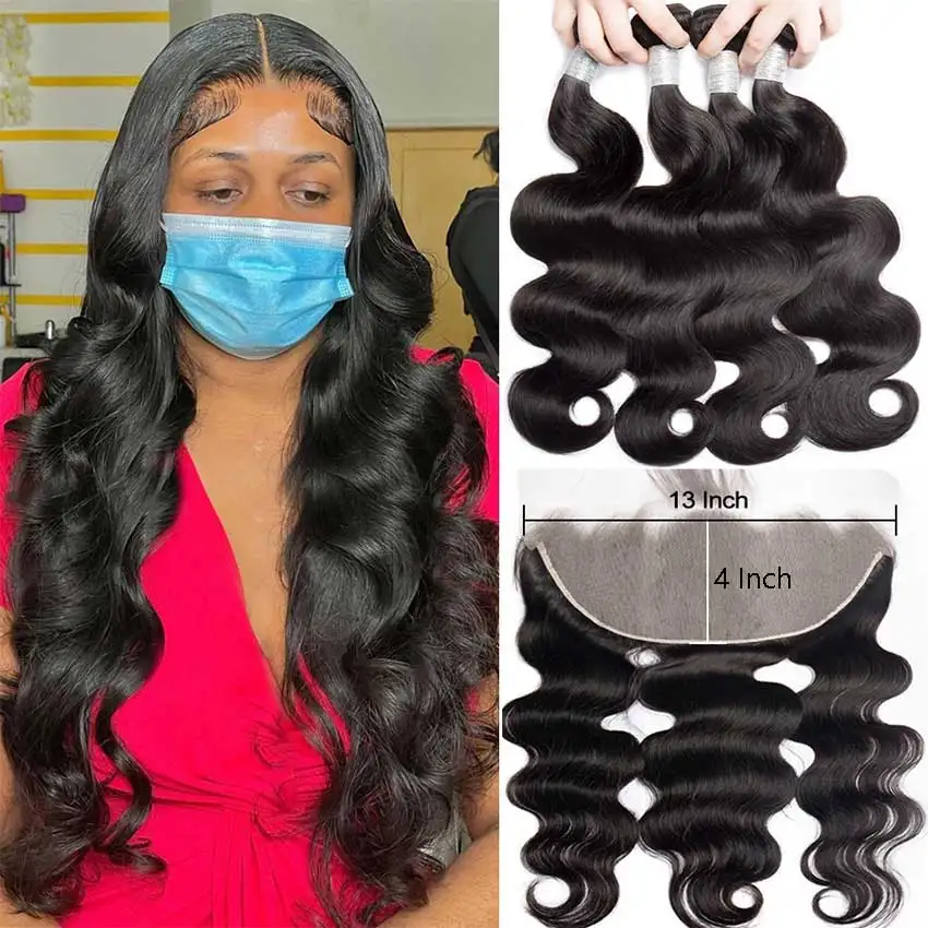 30-дюймовые волнистые пучки волос с фронтальной бразильской лентой 5x5, наращивание волос с драгоценным камнем, 13x 4 искусственных пряди с фронтальной