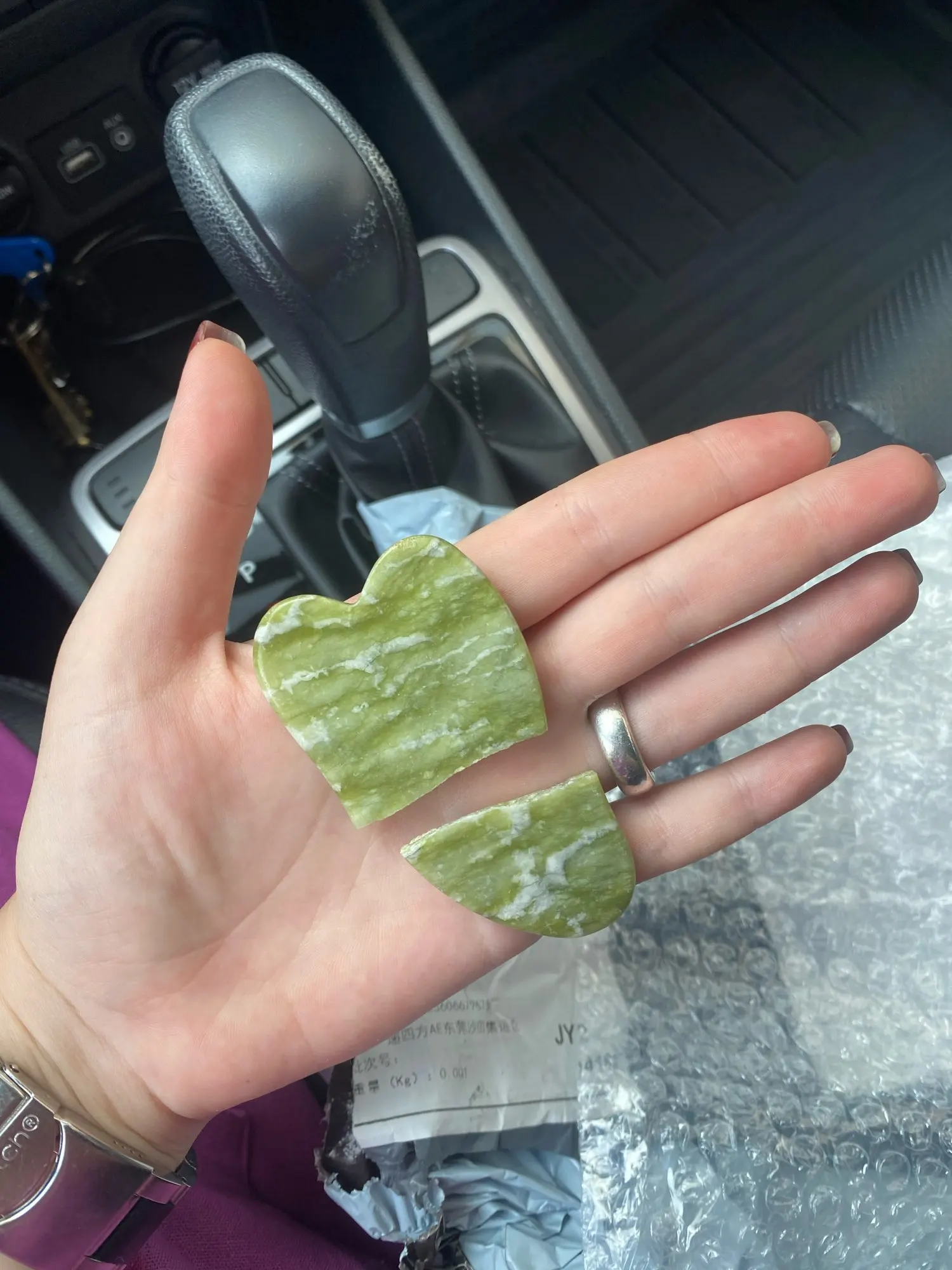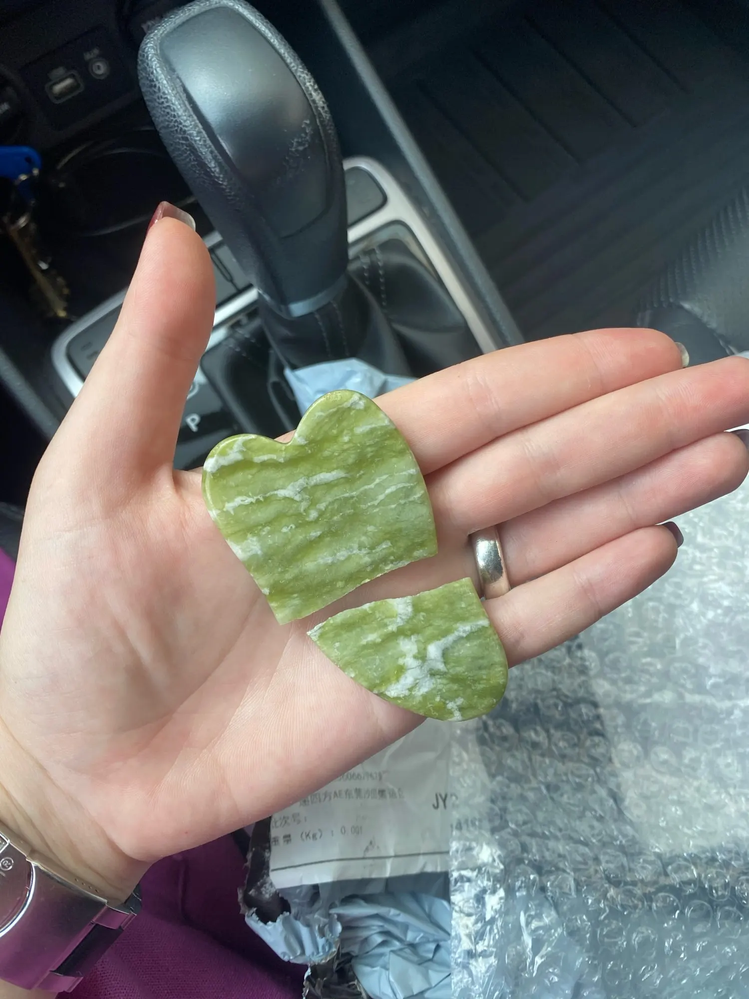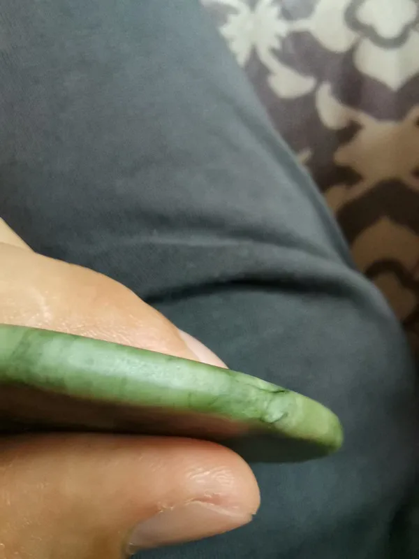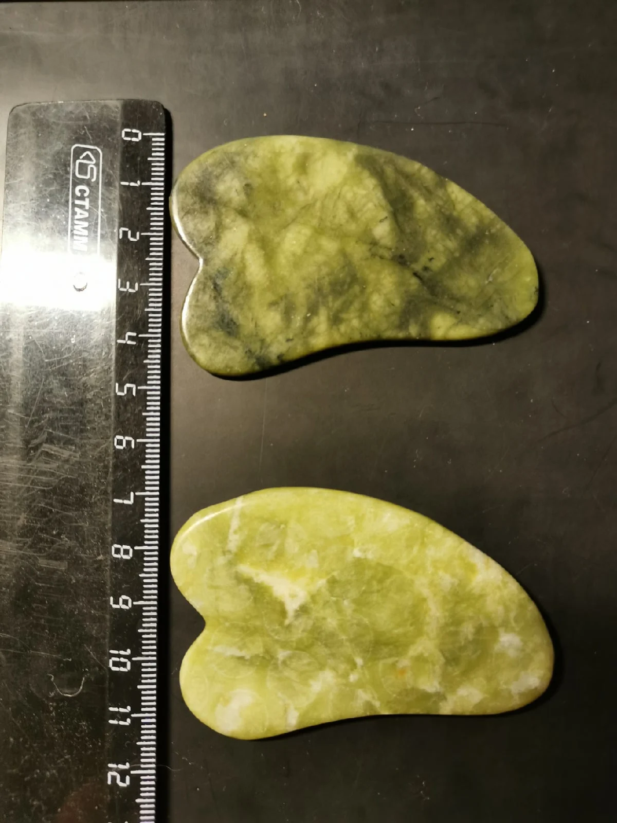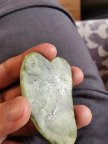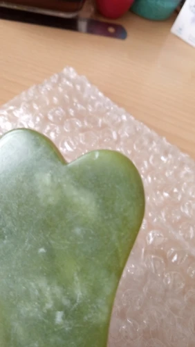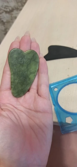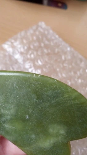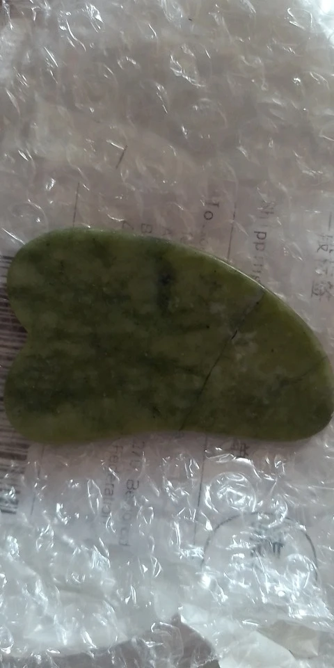 Получила скребок гуаша из нефрита , доставка быстро пришла, только есть немного скол.