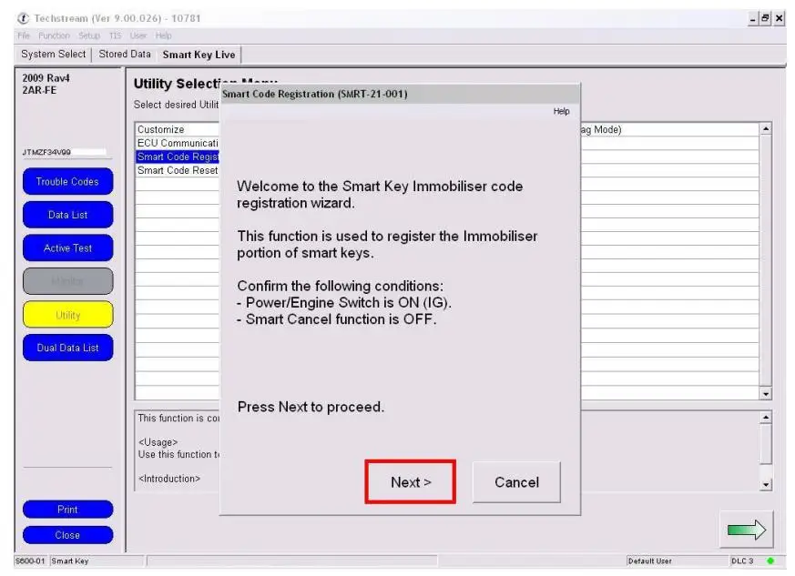 6. Убедитесь, что дверь водителя открыта. Другие двери должны быть закрыты. Не трогайте Руль и педаль. Внимание! Утилита сброса смарт-кода удалит все смарт-коды в автомобиле!