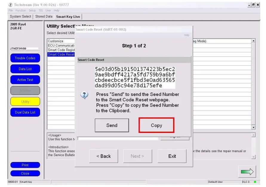 7. ClickPass-Codebutton и copySeed Numberto буфер обмена. Не нужно Используйте для T-oyota Online.