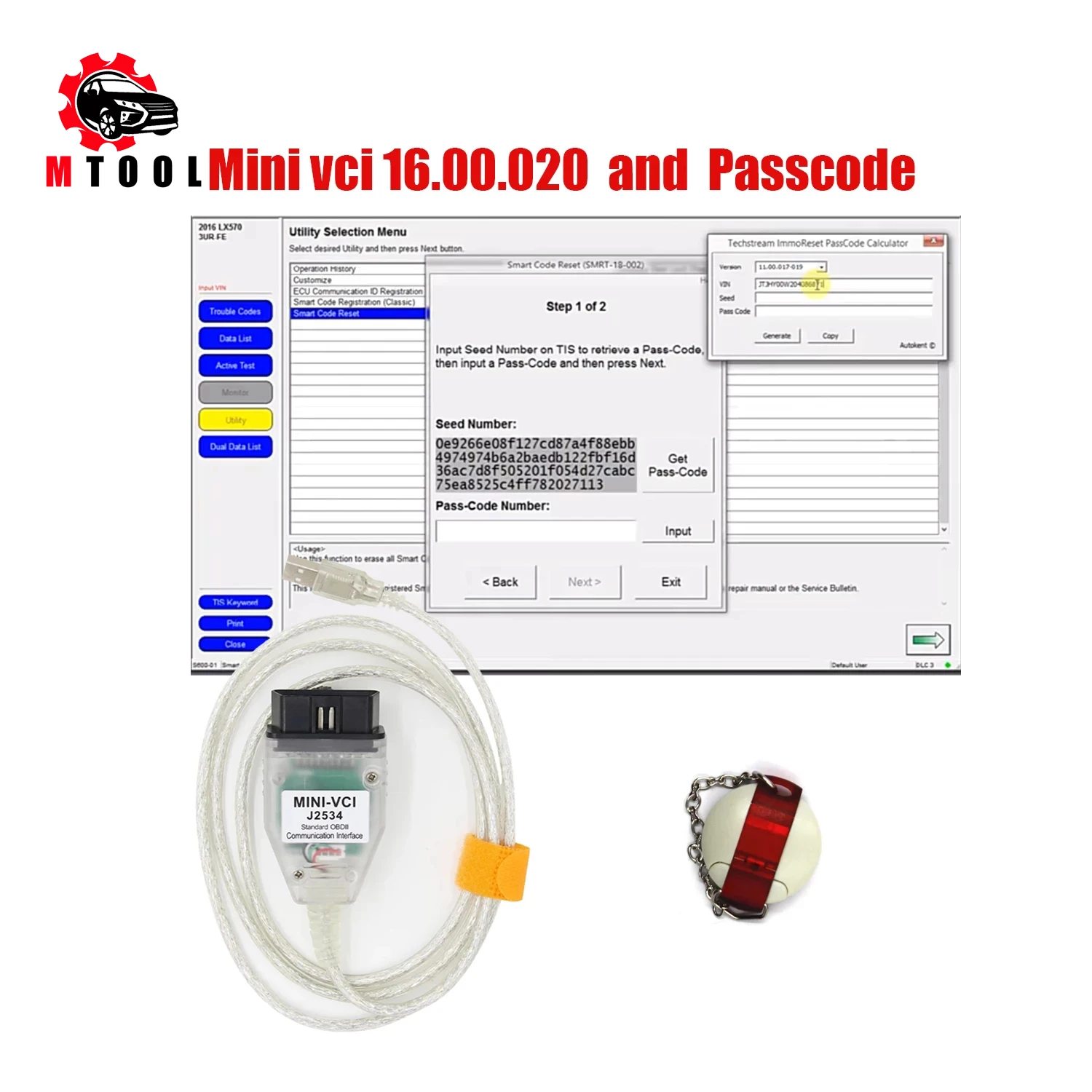 Мини Vci для Toyota TIS Techstream 16.00.020 Minivci FTDI для J2534 для Toyota Techstream ImmoReset, калькулятор кода доступа