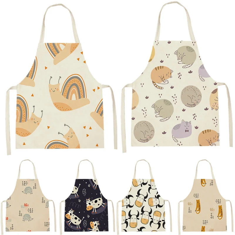 Кухонные фартуки с милыми мультяшными кошками для женщин, хлопковые...