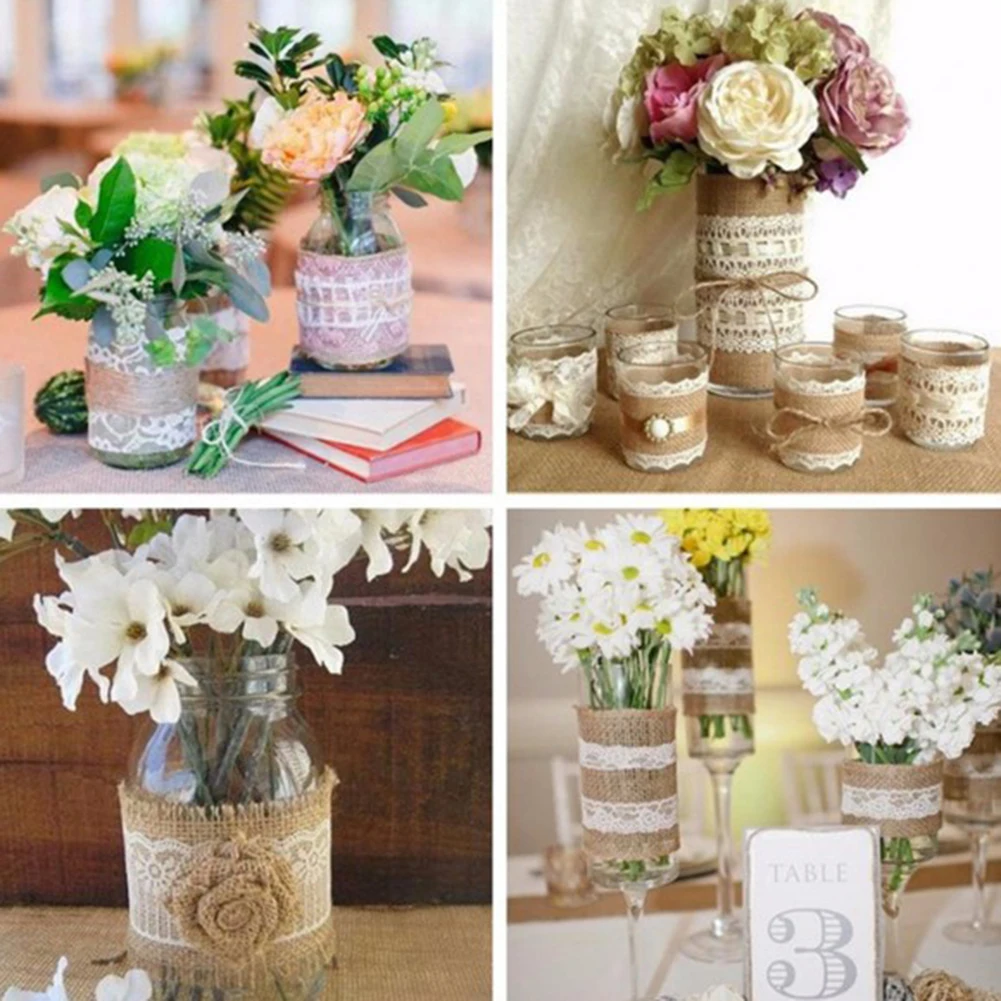 2,5 см * 100 см; Для милых из натурального джута в декорированном мешковиной горшке лента из мешковины с кружевом ленты с белой кружевной отделкой по краю винтажная деревенская свадьба платье украшения