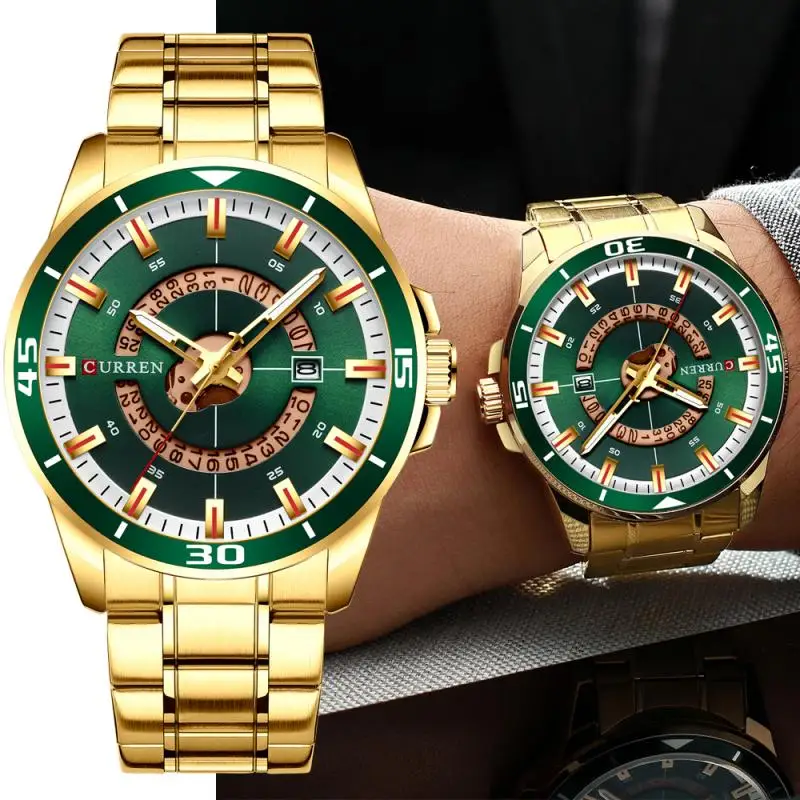 CURREN часы для мужчин золотые наручные часы из нержавеющей стали с...