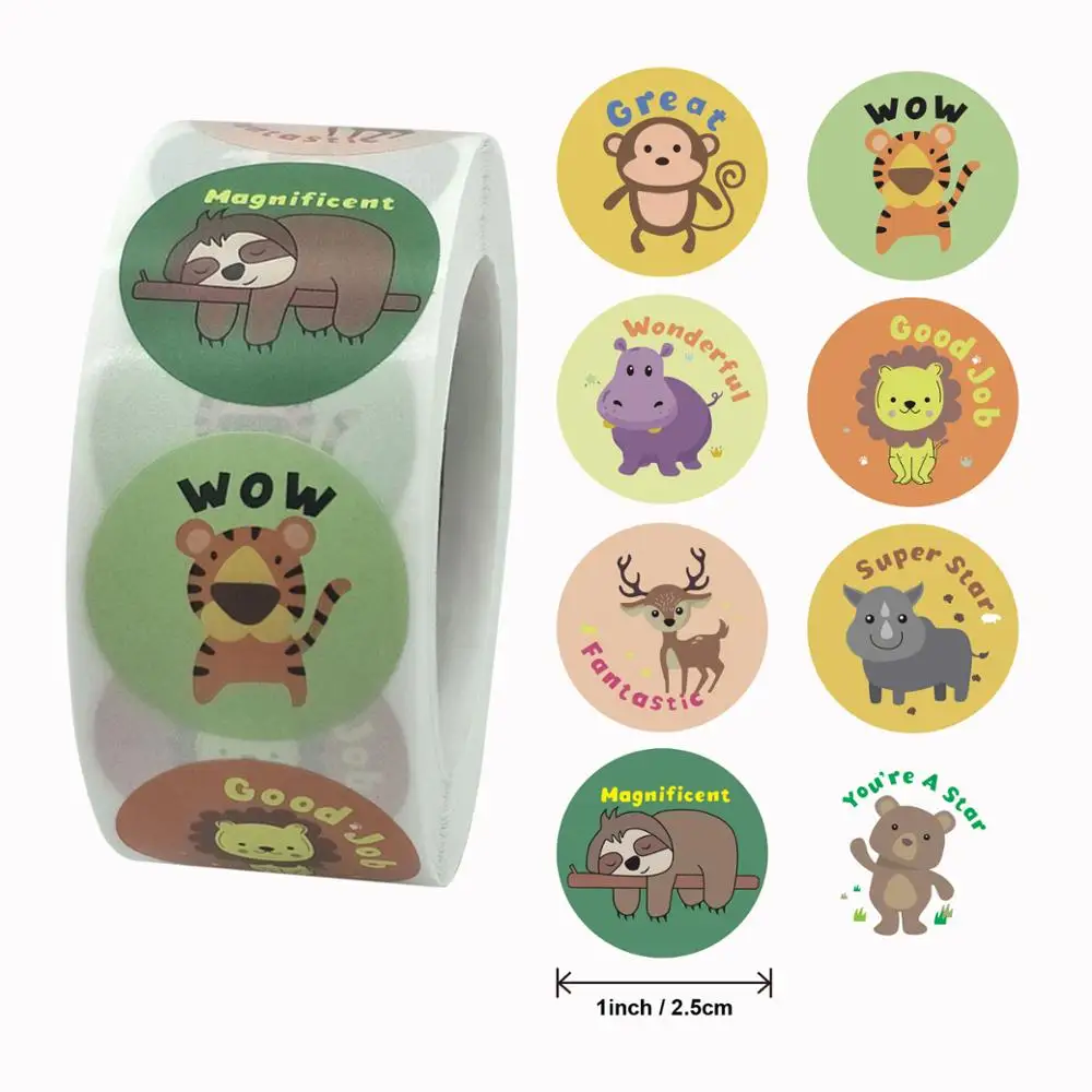 D M 500 шт., наклейки для вознаграждения, рулон наклеек для детей, мотивационные наклейки с милыми животными для учителей