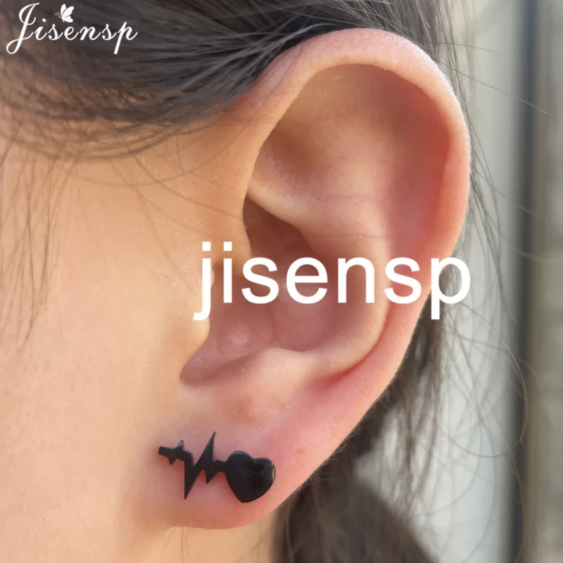 Серьги-гвоздики женские, мужские, маленькие, с черным сердцем из нержавеющей стали 2021, серьги из стали