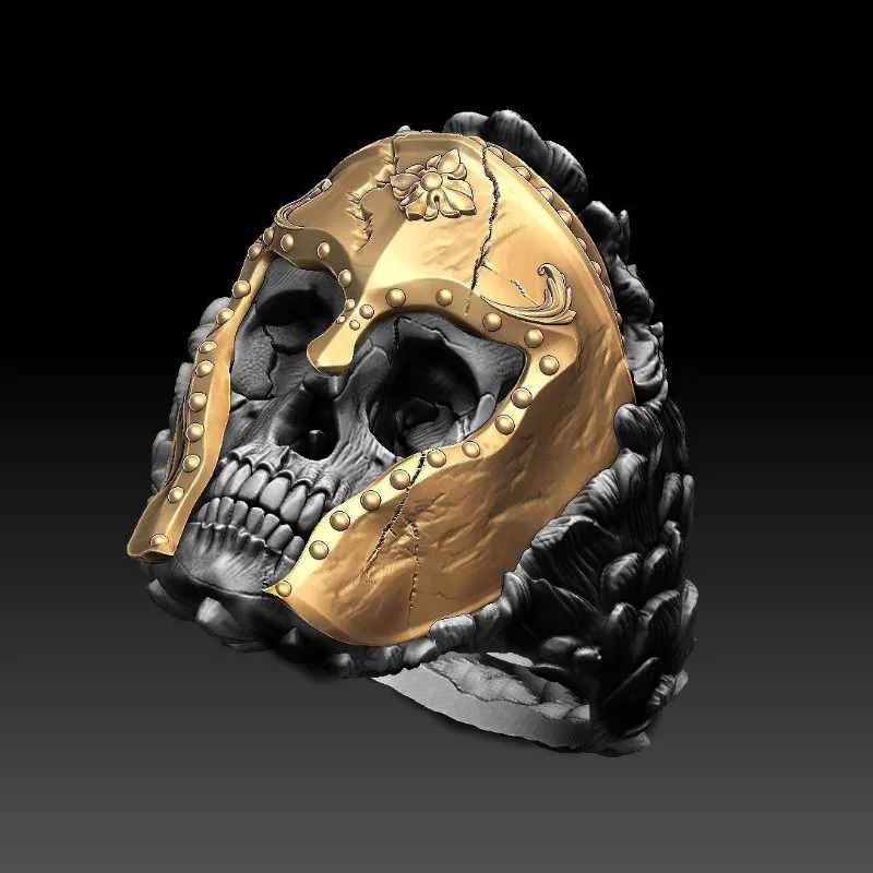 Новинка модное кольцо воин шлем панк череп двухцветное резное кольцо Мужская вечеривечерние готика ювелирное изделие подарок