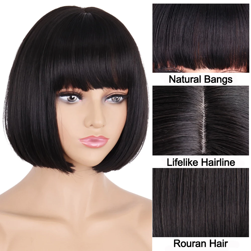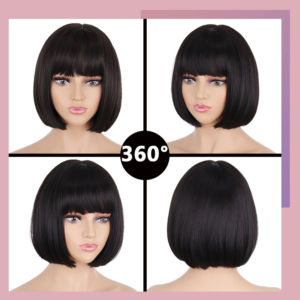 Linghang короткие прямые боб синтетические парики с челкой для черных Для женщин термостойкий парик для Косплэй вечерние повседневные волос