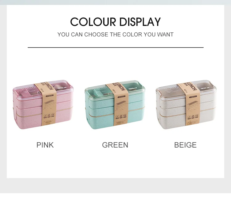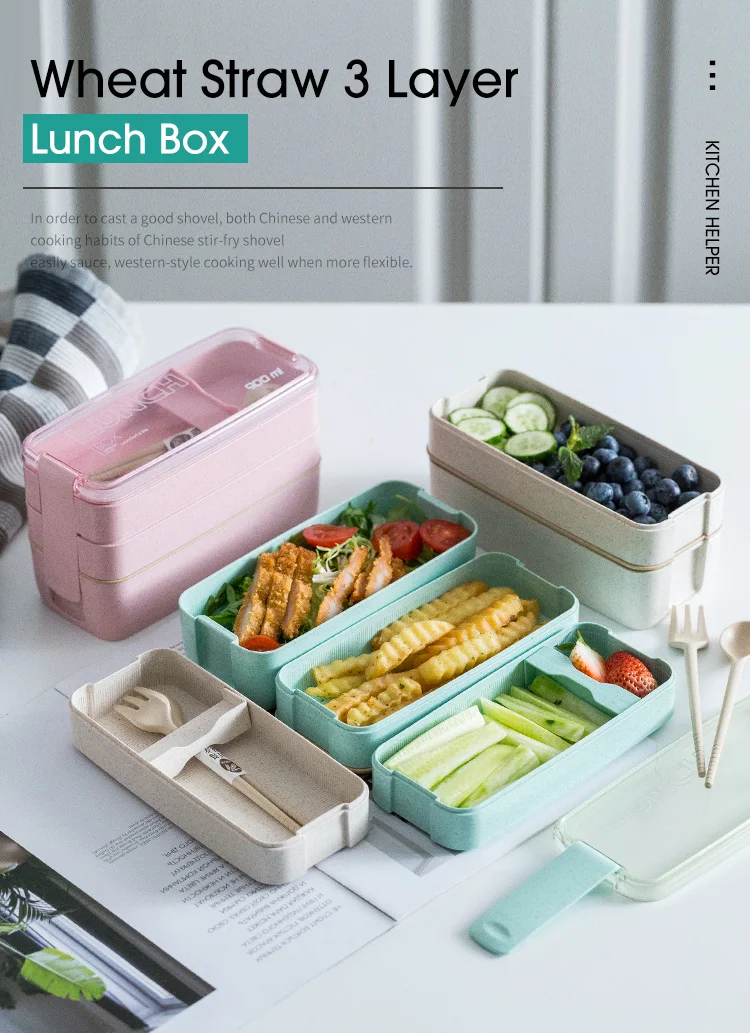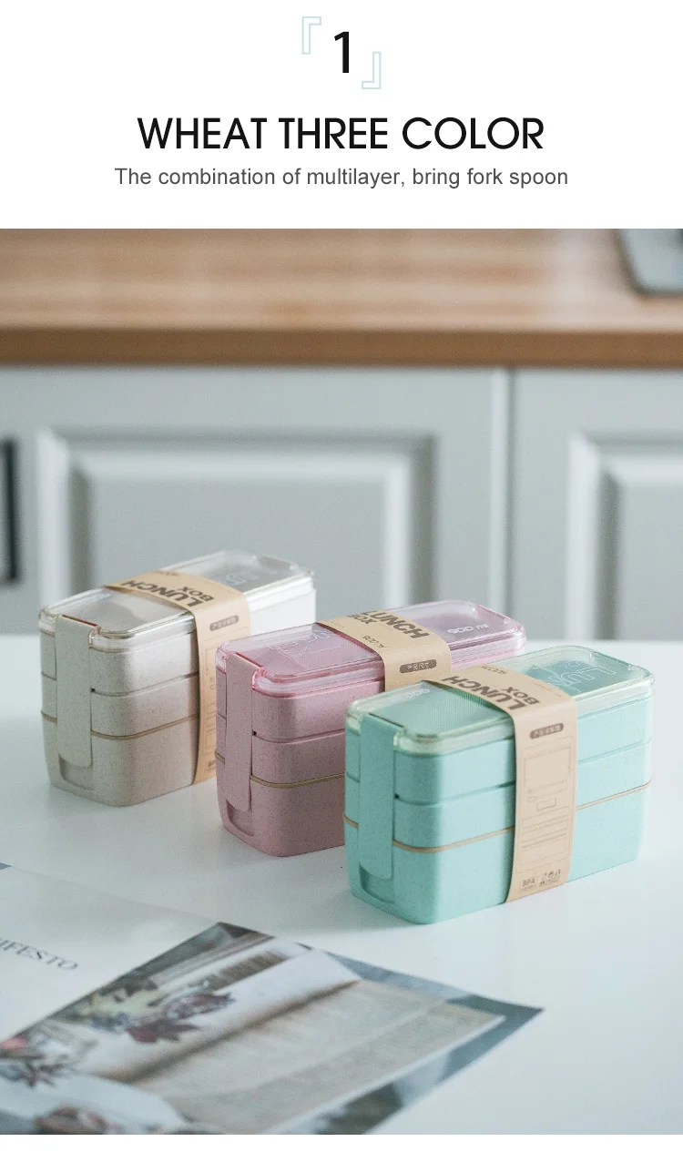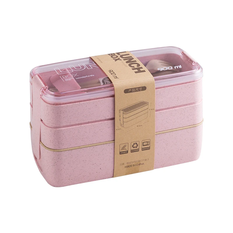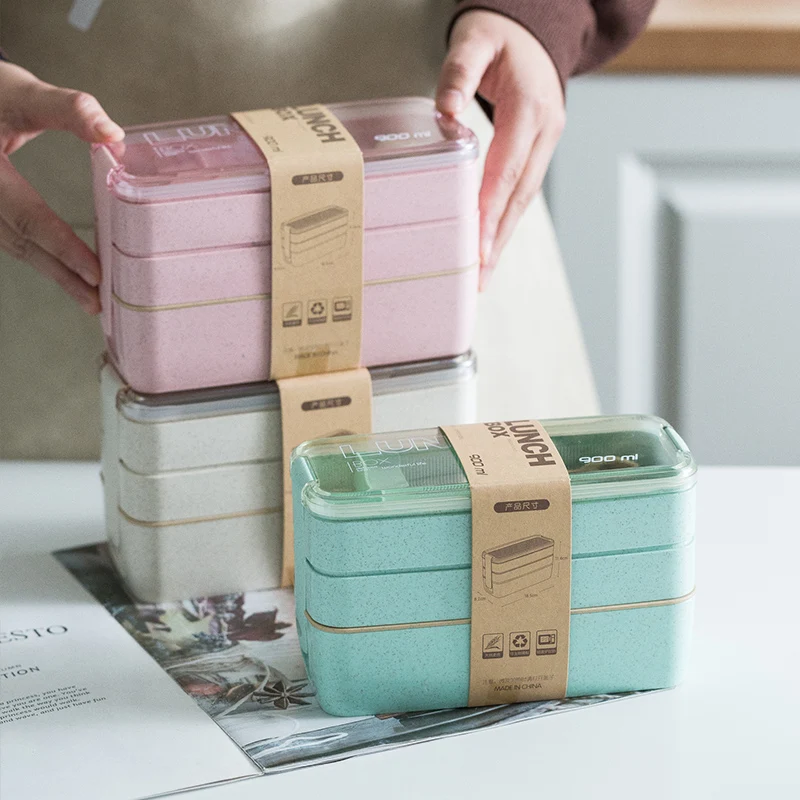 900 мл портативный здоровый материал коробка для завтрака 3 слоя пшеничной соломы бенто коробки посуда для микроволновой печи контейнер для хранения еды Foodbox