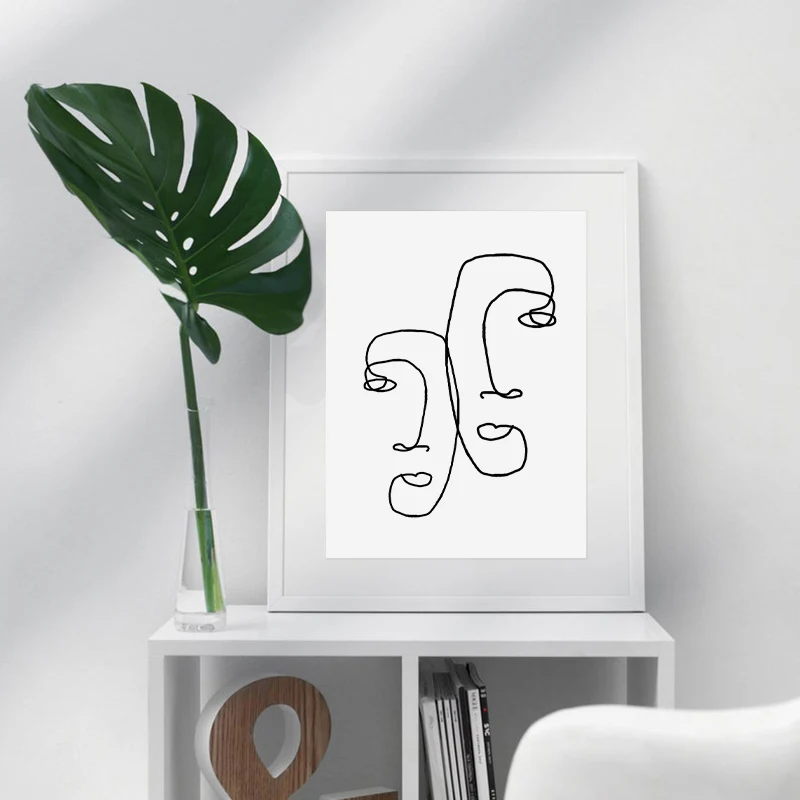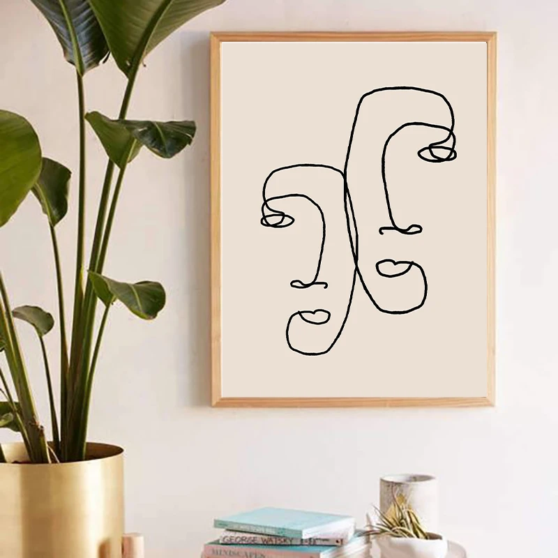Абстрактная одна линия для пары рисования лица минималистский роман...