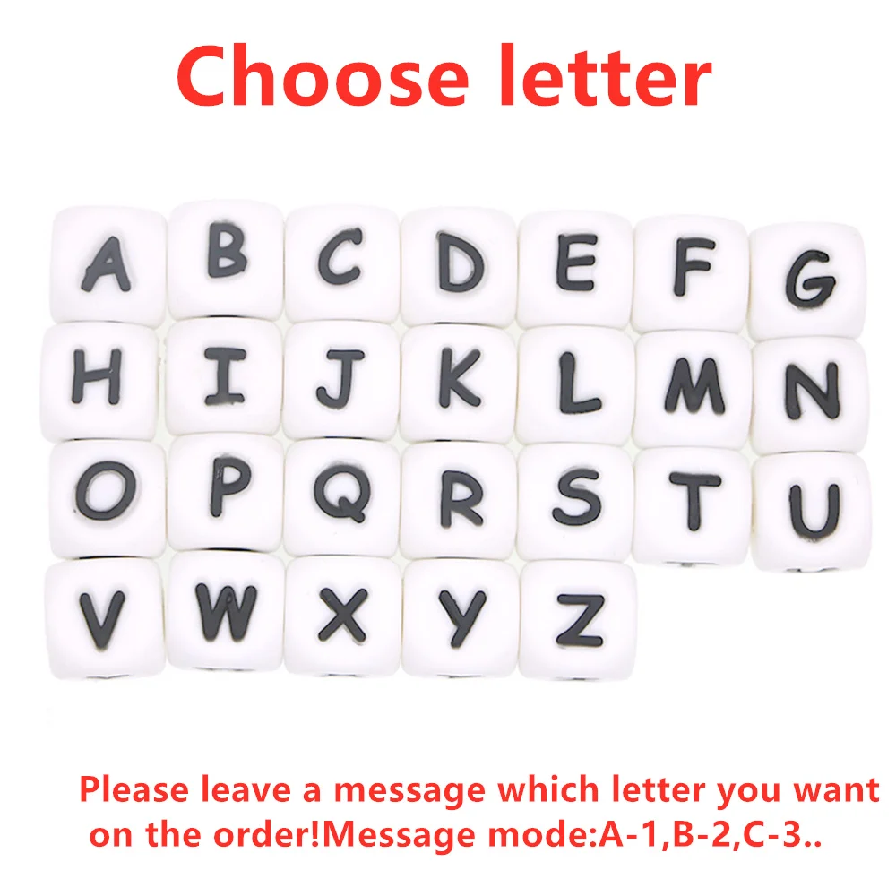 10 шт., силиконовые бусины в виде букв английского алфавита, 12 мм