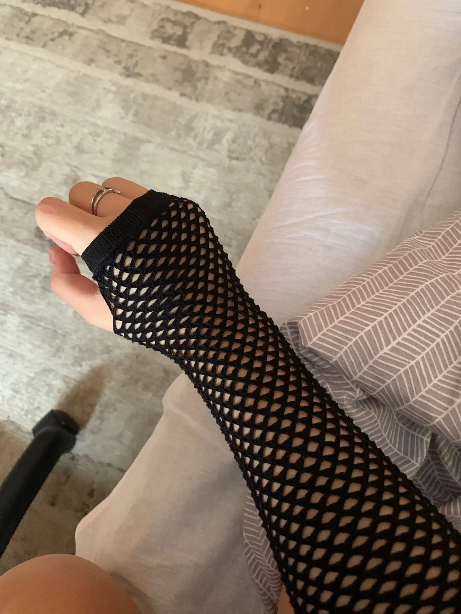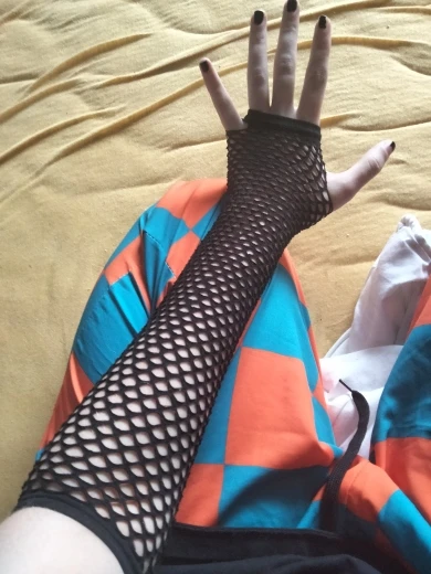 Перчатки женские длинные ажурные, неоновые, без пальцев