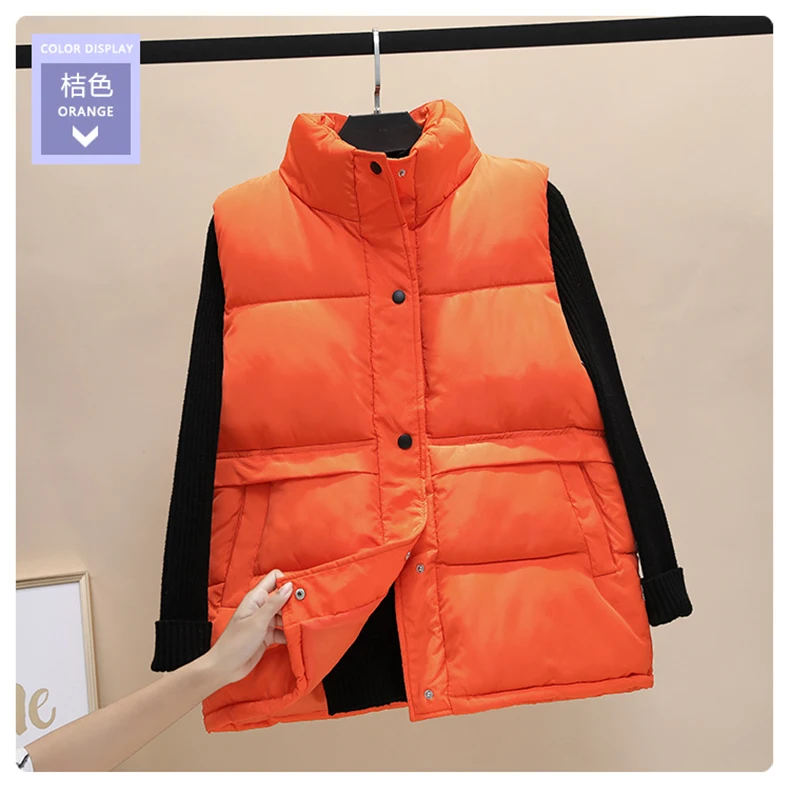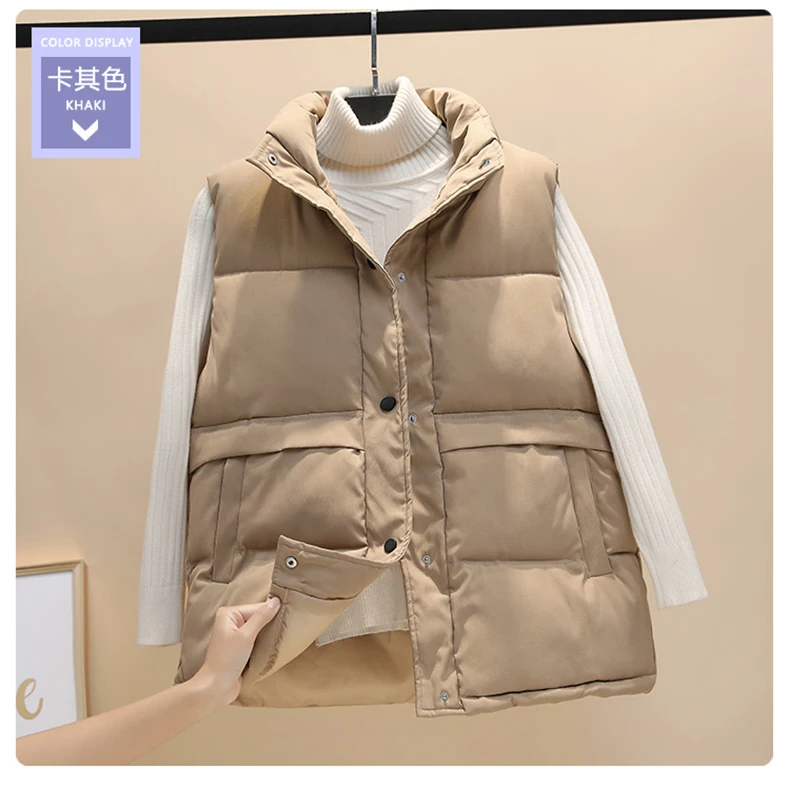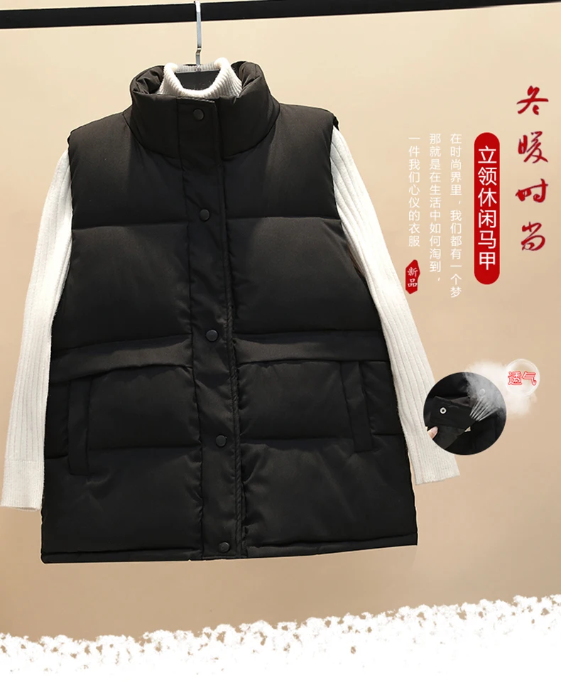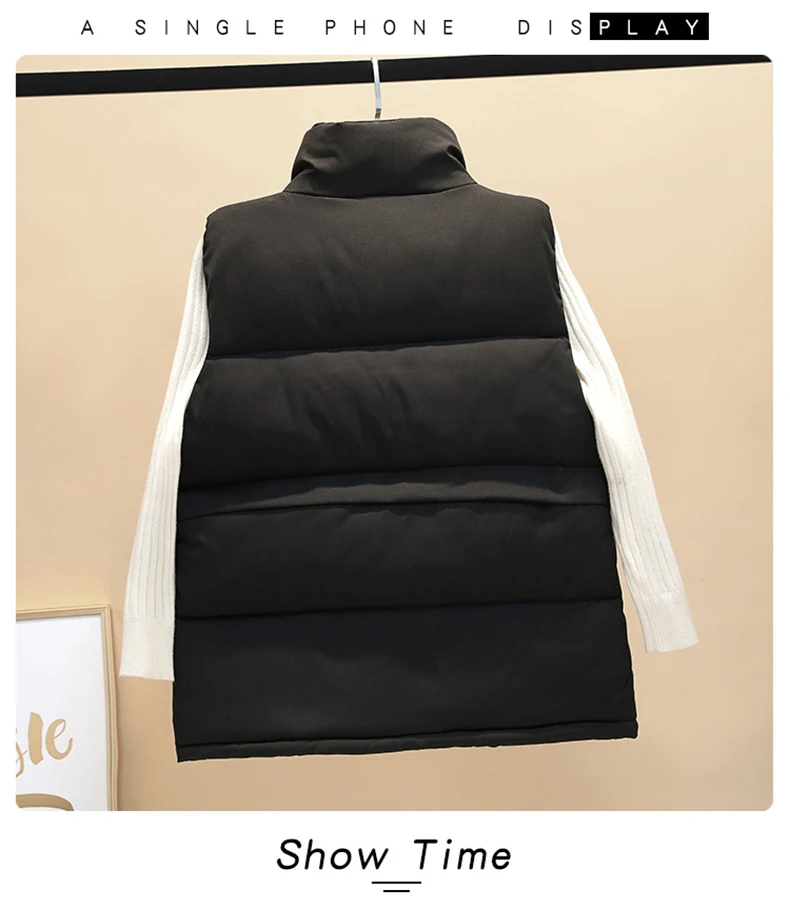Осенне-зимний женский однотонный Свободный жилет с кулиской и воротником-стойкой, длинная куртка-жилет хлопковая подкладка, женский ветрозащитный теплый жилет