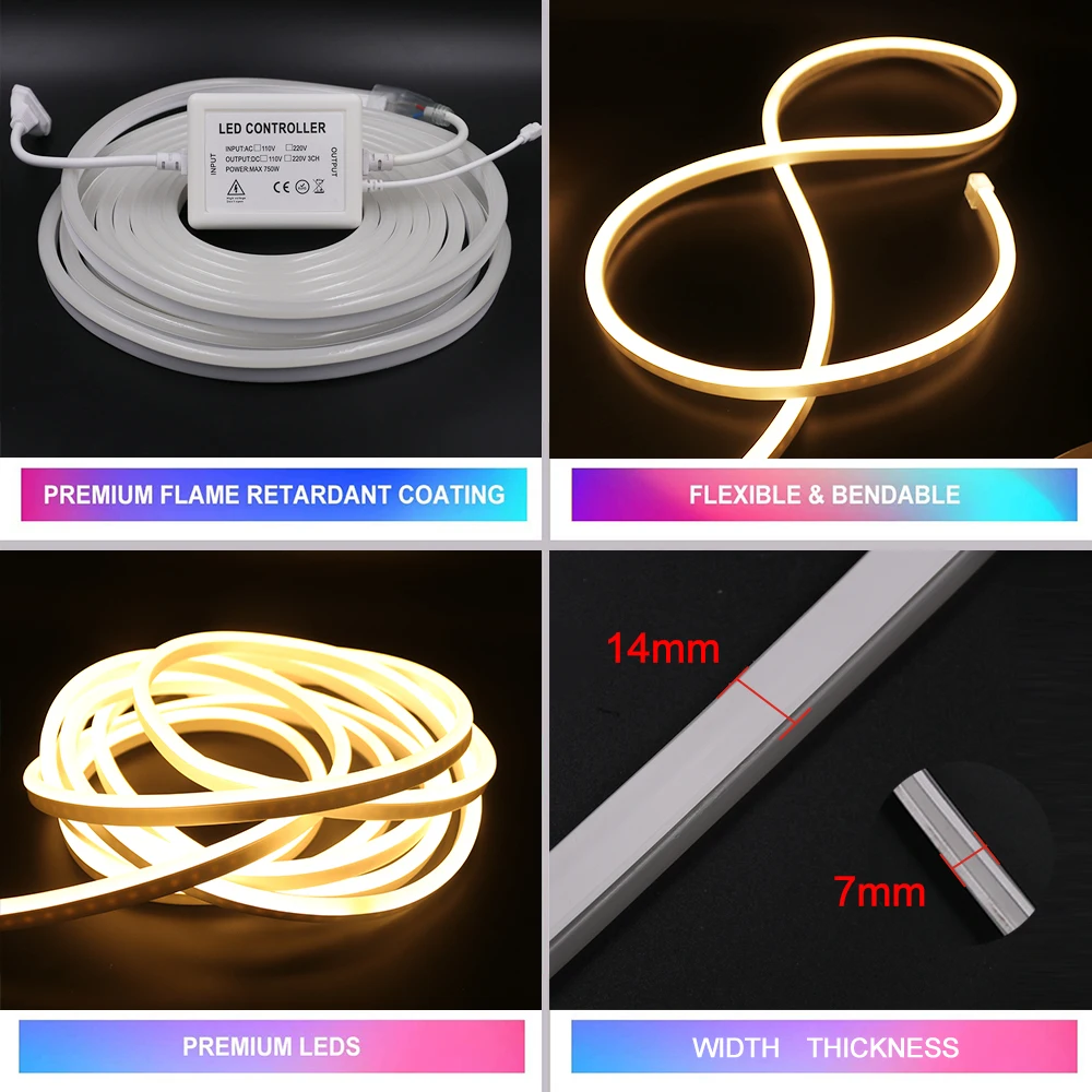 220 В 110 В светодиодный неоновая полоса освещения с регулируемой яркостью США ЕС Великобритания 23 клавиши комплект диммера неоновая лампа 2835 120 светодиодовм светильник аемая Гибкая светодиодная веревка освещения s