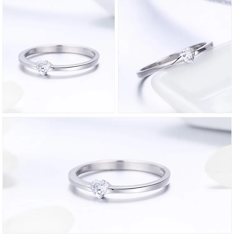 Женское кольцо с сердечком Bamoer, 925 пробы, серебряное кольцо с цирконием, Подарок на годовщину, SCR450