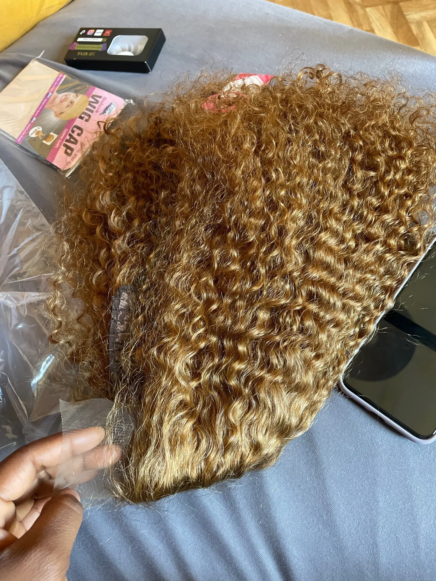 Страна: US Color: Honey Blonde 4x4 wig Density: 150 density Stretched Length: 16inches Доставка: DHL 25.11.2021