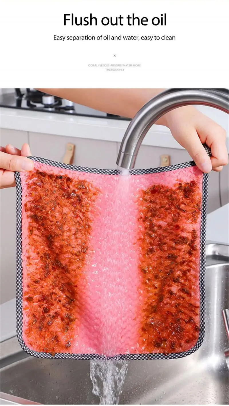 Антипригарное домашнее полотенце для уборки, полотенце для очистки от ворса, коралловый флис, двухсторонняя вешалка для пальто, кухонный инструмент, нежирная ткань для посуды, Прямая поставка.