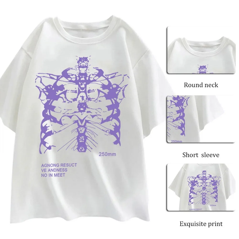 Футболка с коротким рукавом, уличная одежда в стиле хип-хоп, винтажная одежда с принтом скелета, Модные свободные топы большого размера в стиле панк, на лето