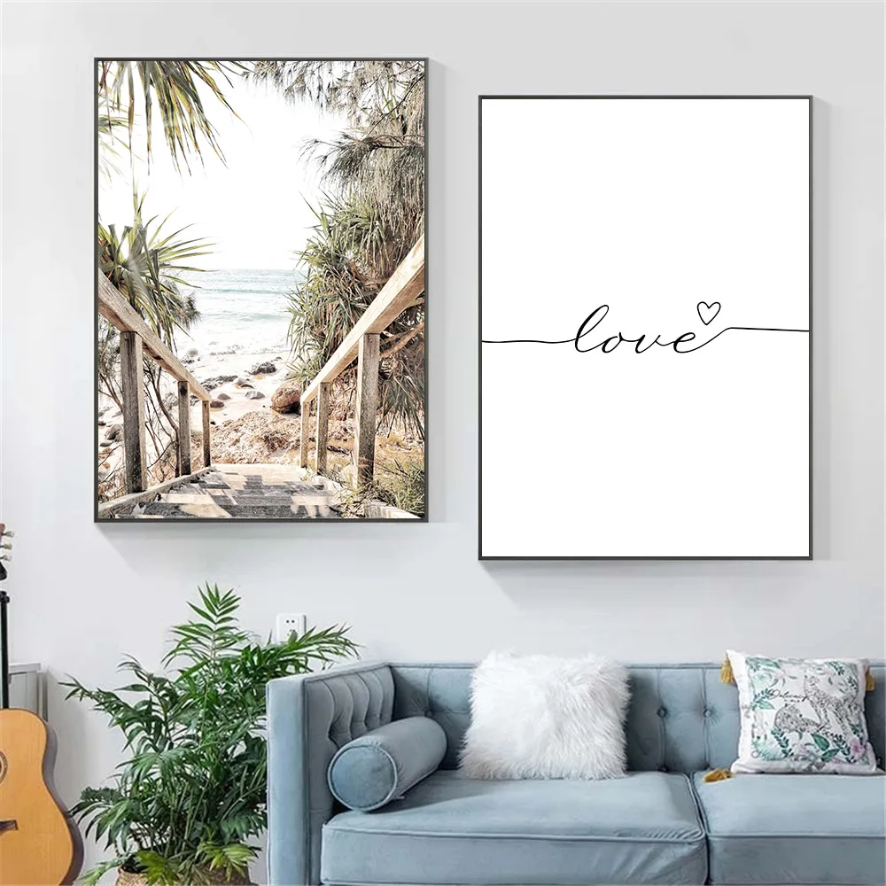 Пляжная Настенная картина с кокосовым деревом, постер, летние пейзажи, путешествия, художественные принты, любовь, цитаты, Картина на холсте, скандинавские картины, домашний декор