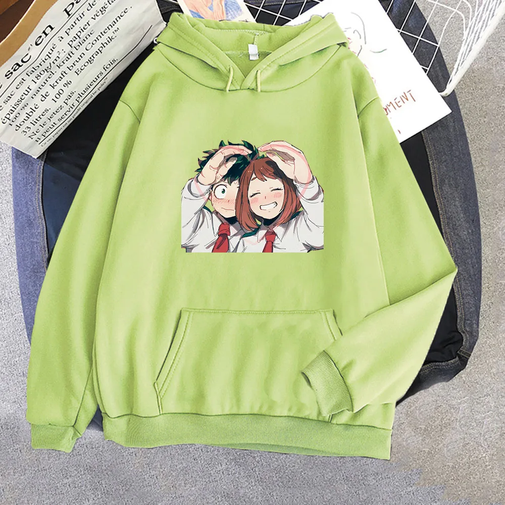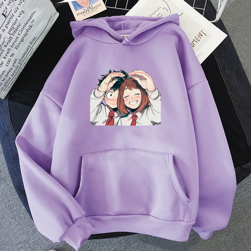 Толстовки в стиле аниме Харадзюку с надписью Моя геройская Академия, забавная мультяшная одежда мидория Деку и очако урарака, модная Повседневная Толстовка для пар