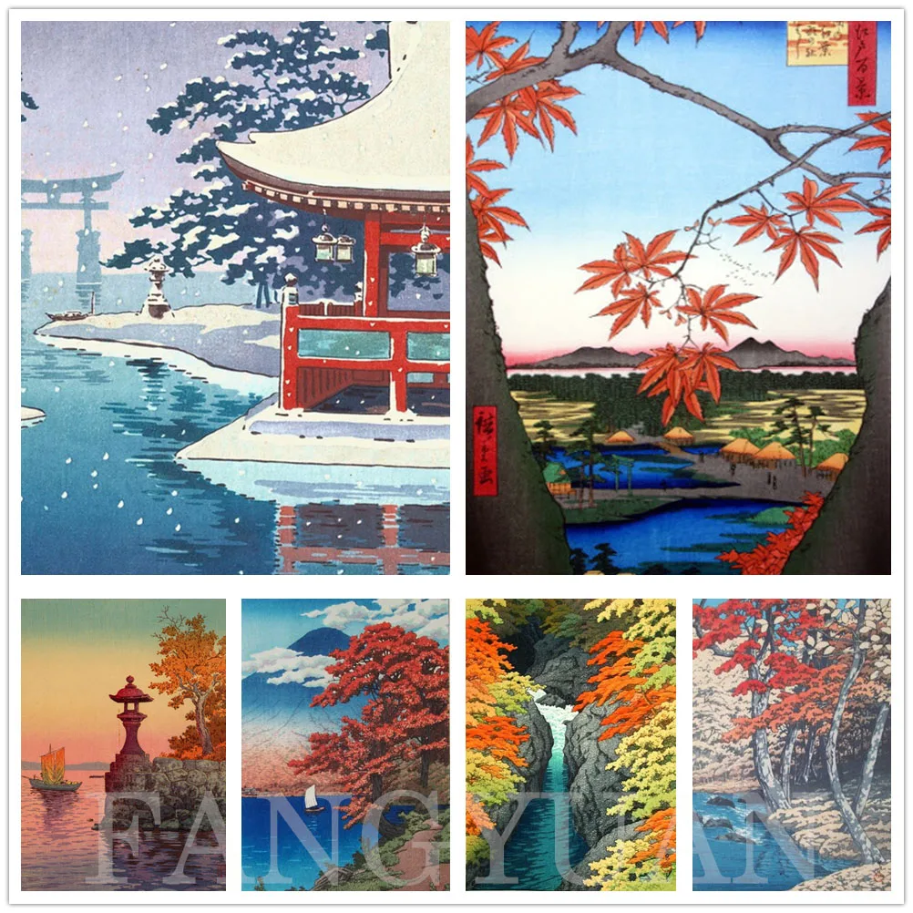 Японский стиль пейзаж алмазная живопись 5D Diy Эдо периода Fuji пейзаж Стразы Вышивка крестиком домашний Декор настенный постер