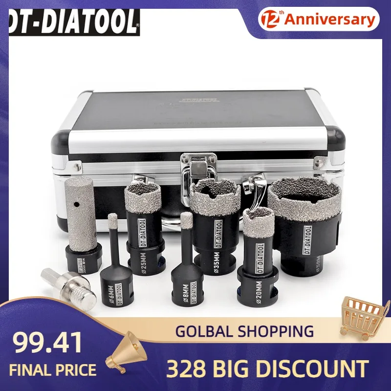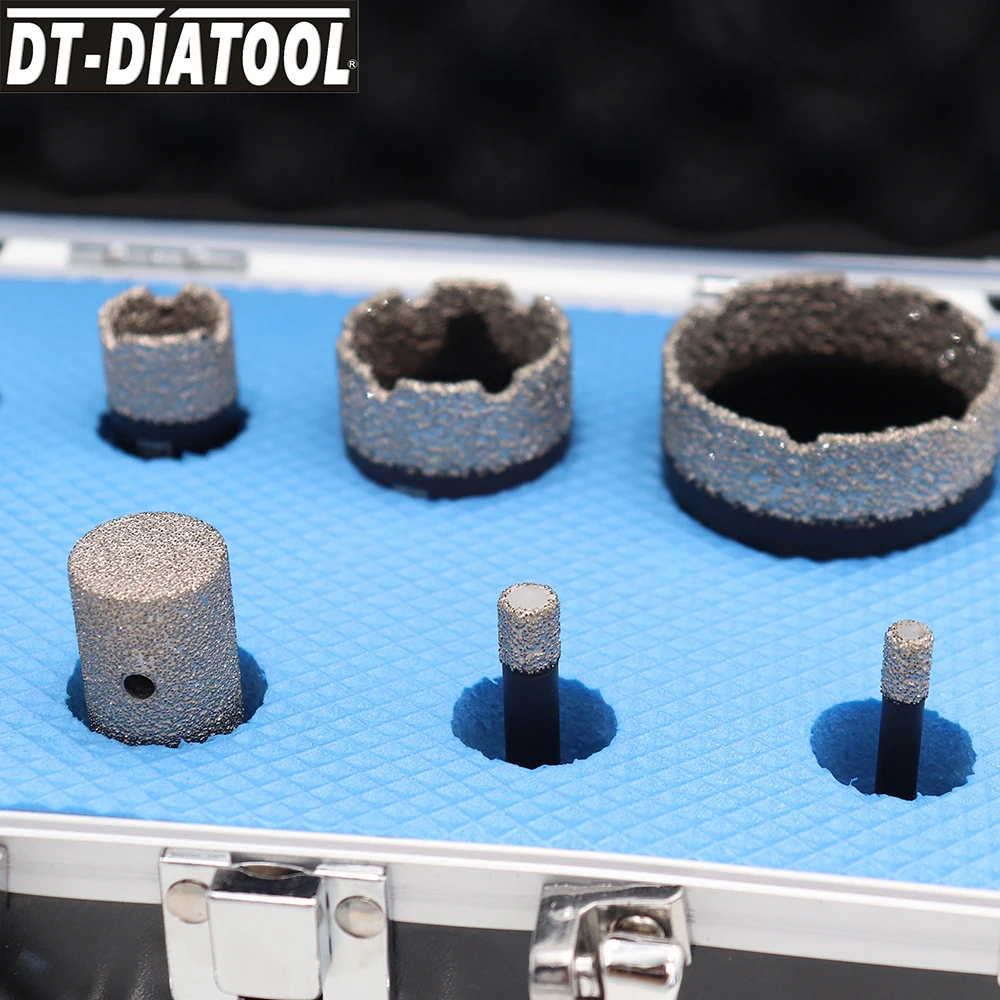 DT-DIATOOL 1 набор в штучной упаковке вакуумных паяных алмазного сверла биты пустотелого сверла комплекты фарфоровой плитки M14 соединение кольцевая пила и 1 шт. палец Биты