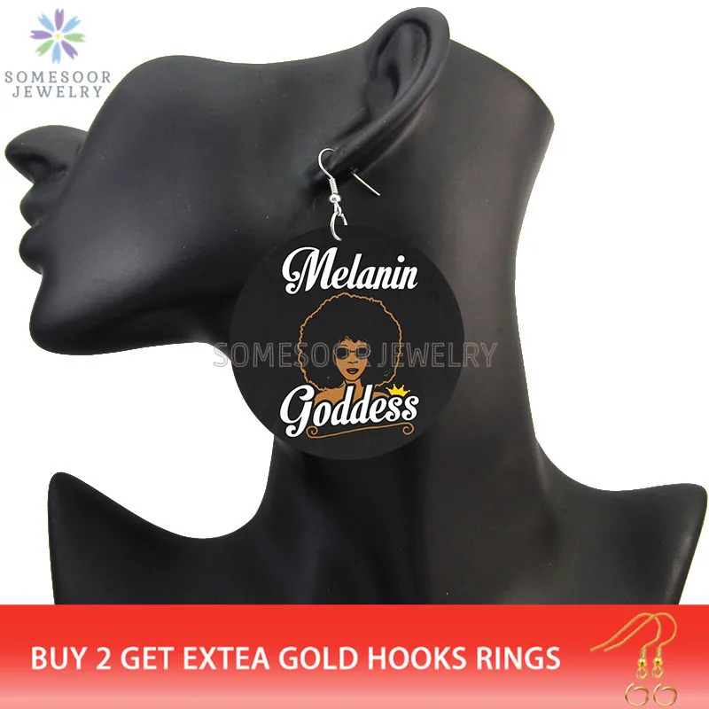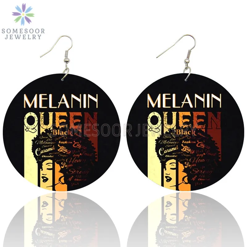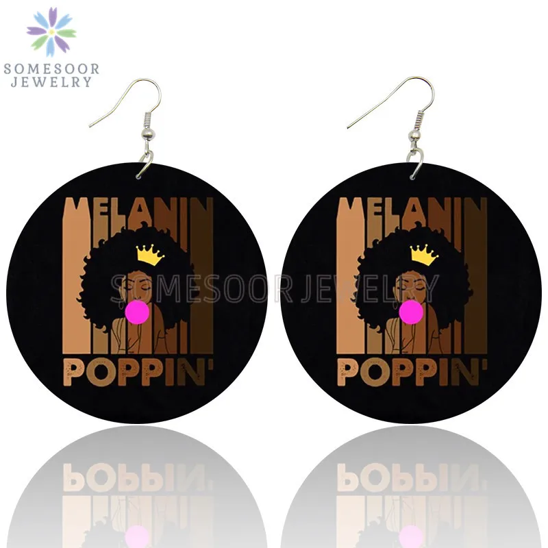 Деревянные висячие серьги SOMESOOR, поппин из меланина, с рисунком черной королевы, богини, афро, Вдохновляющие поговорки, ушные петли, висячие серьги для женщин, подарки