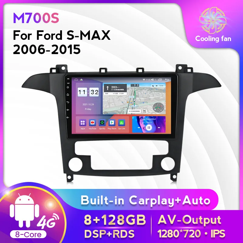 Автомагнитола IPS Android 11, автомобильное стерео Мультимедиа для Ford S-Max, Ford S Max 2006, 2007, 2008, 2015, GPS навигация, Wi-Fi, автомобильный DVD