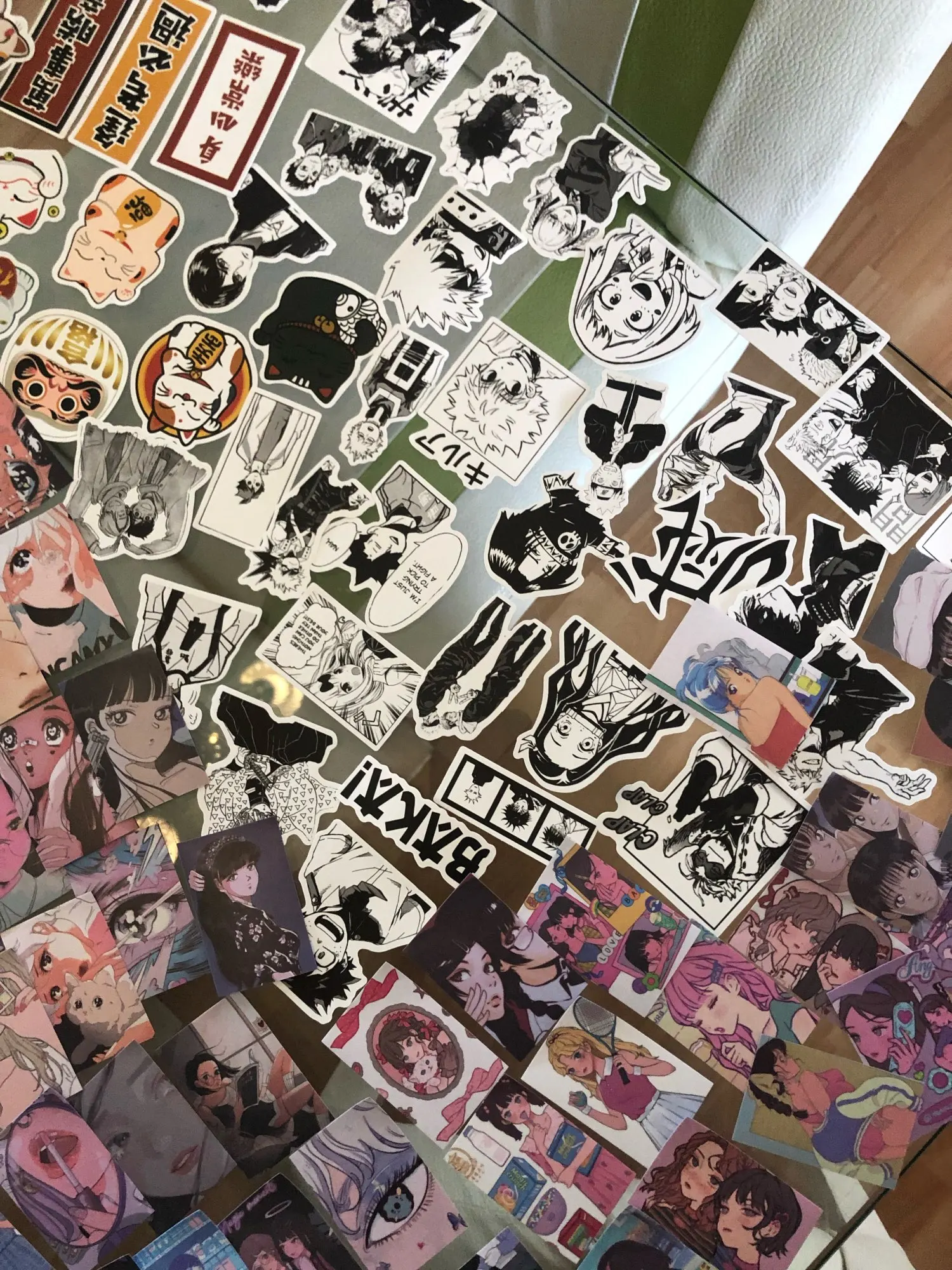103050 шт. аниме-наклейки s, черно-белые Японские Аниме-наклейки DIY, скейтборд, многоразовая наклейка на багаж, автомобиль, детские игрушки