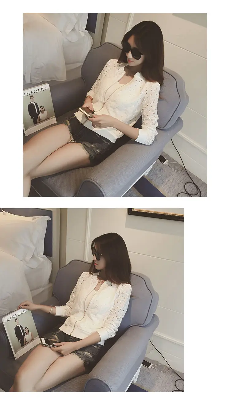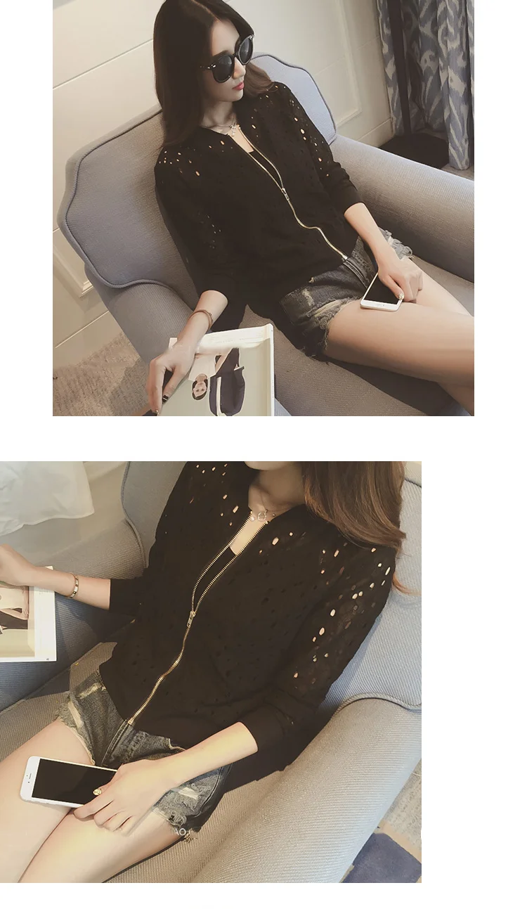 ВеснаЛето 2021 Кардиган большого размера кружевной тонкий Бомбер куртка с длинным рукавом Короткая бейсбольная форма Солнцезащитная Женская
