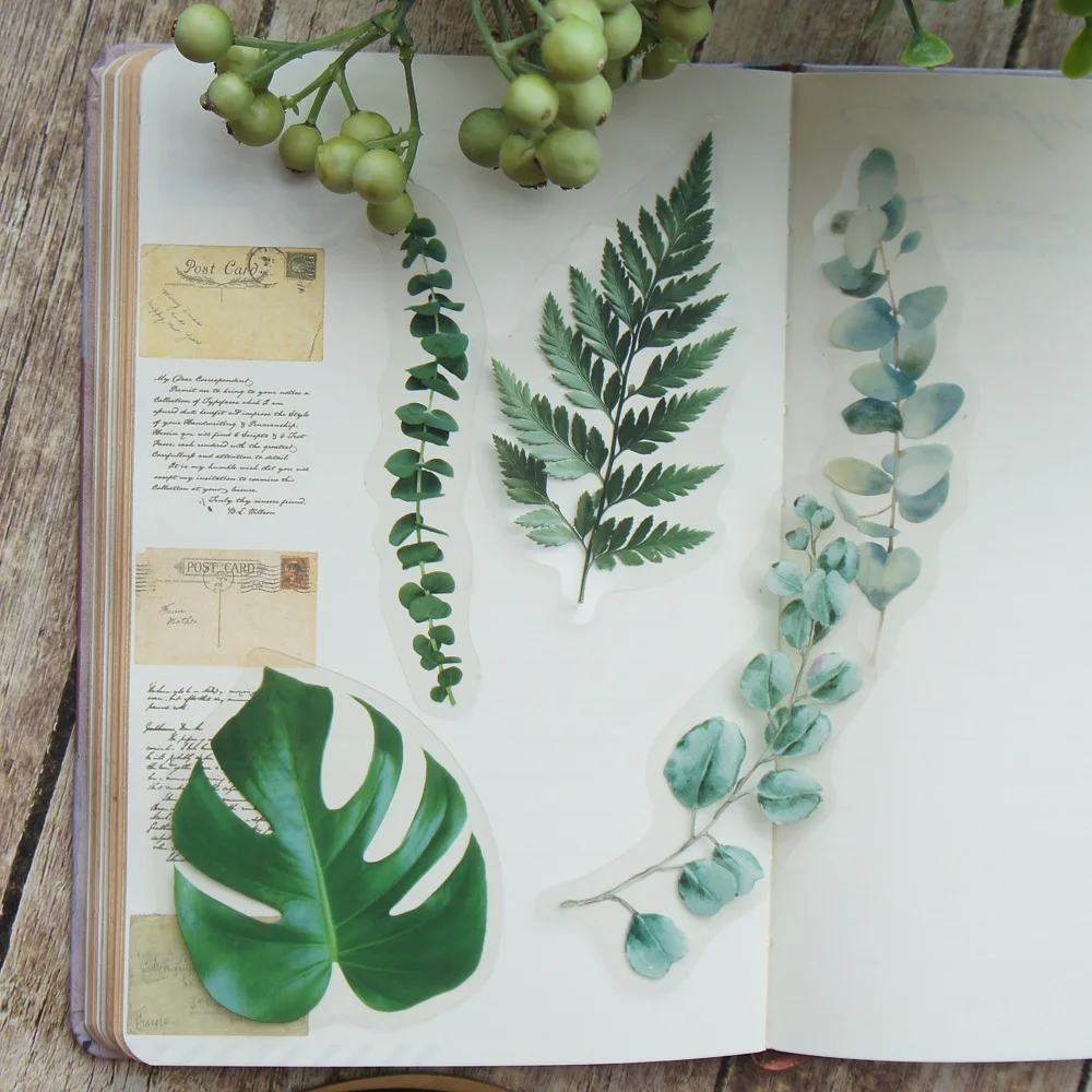 Этикетки из полиэтилена с натуральными зелеными листьями для скрапб...