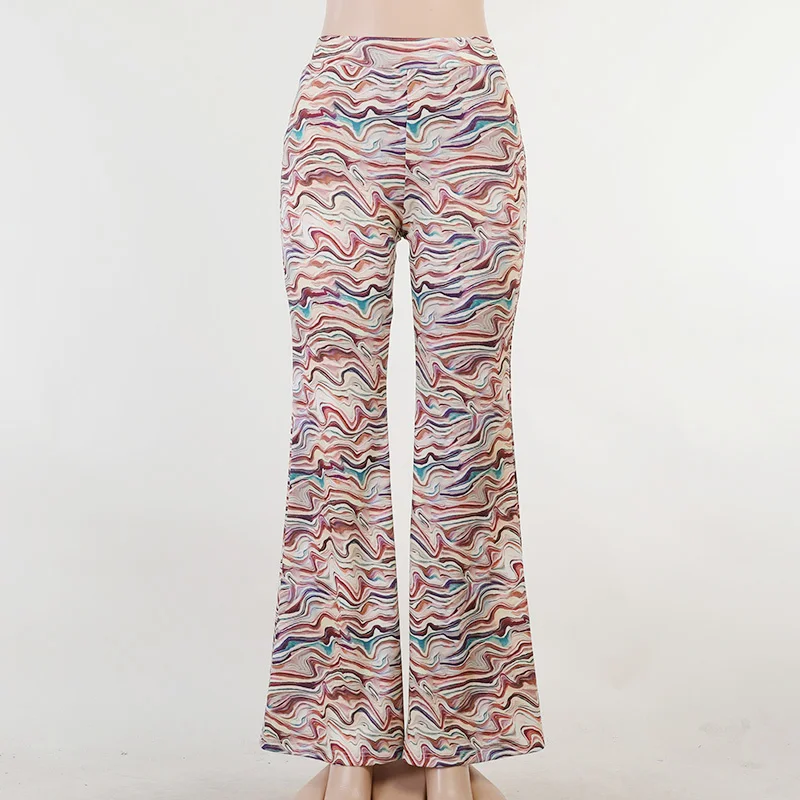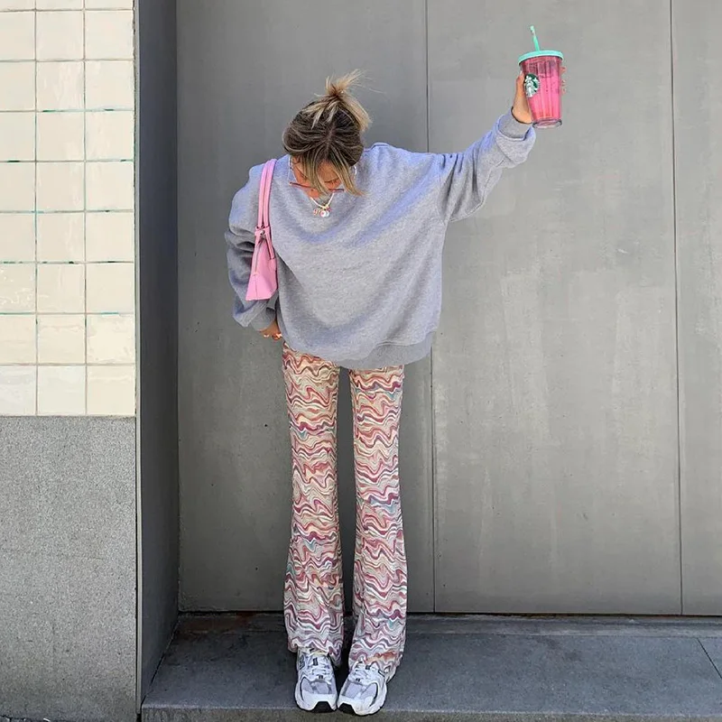 Женские брюки с принтом WannaThis2021, длинные облегающие брюки с волнистой расцветкой, свободные, с высокой талией, летняя уличная одежда