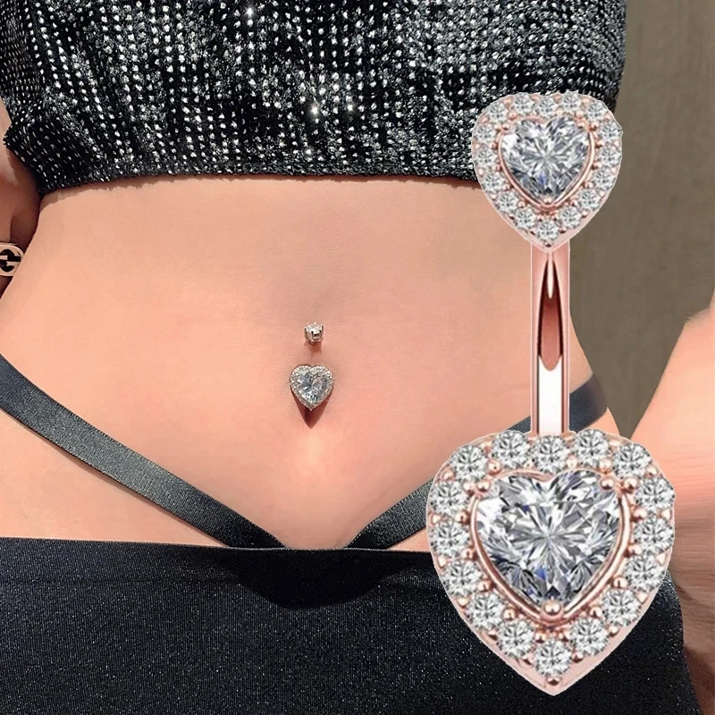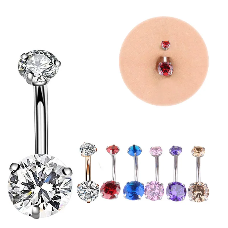 Женское кольцо для пупка из хирургической стали, с кристаллами циркона
