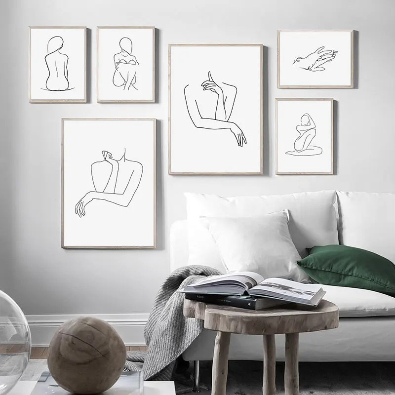 Абстрактная черная линия для женщин, Картина на холсте, Настенные Декоративные плакаты в скандинавском стиле для гостиной, спальни, минималистичный домашний декор, картина