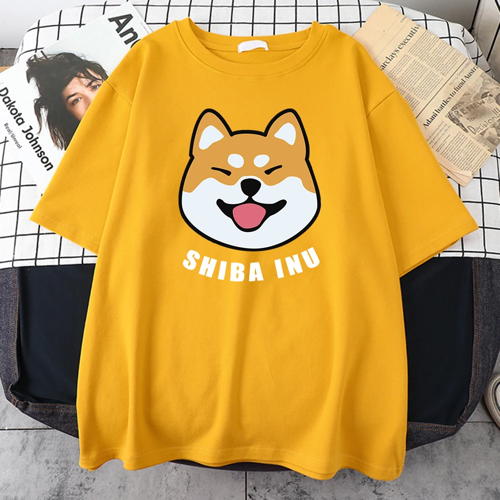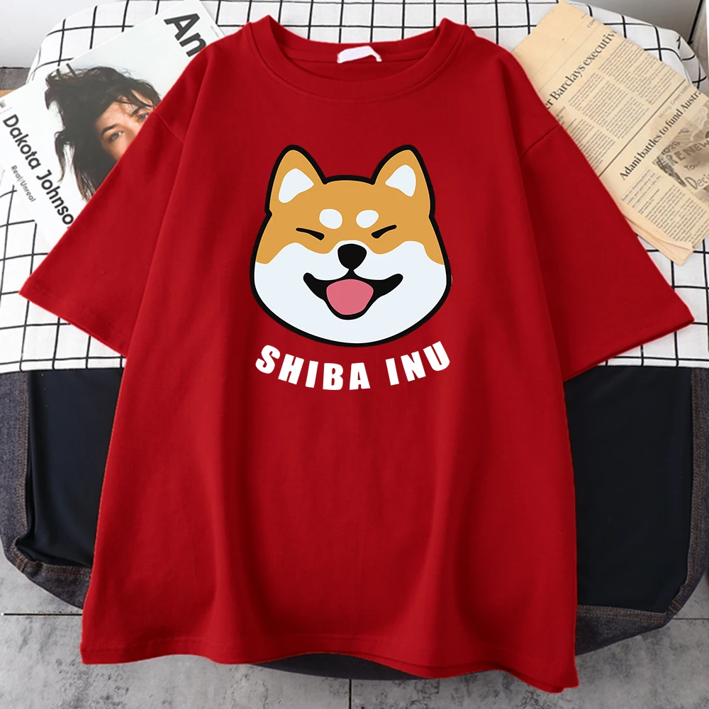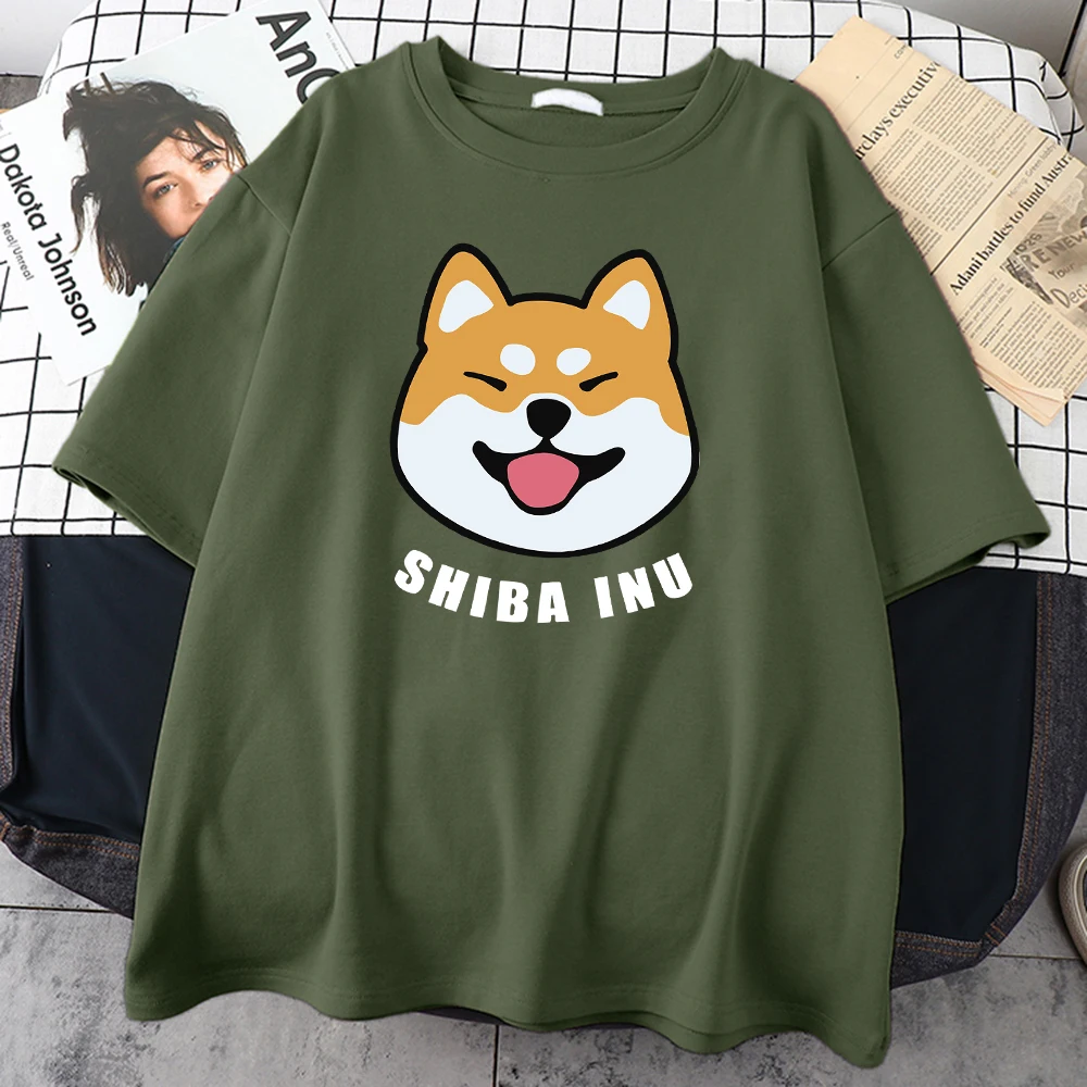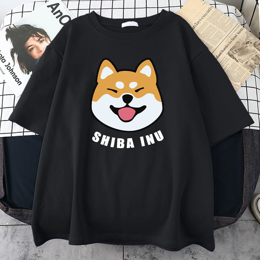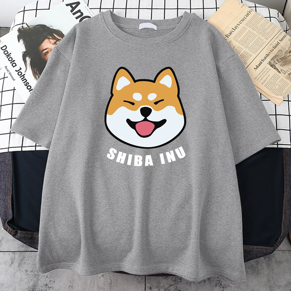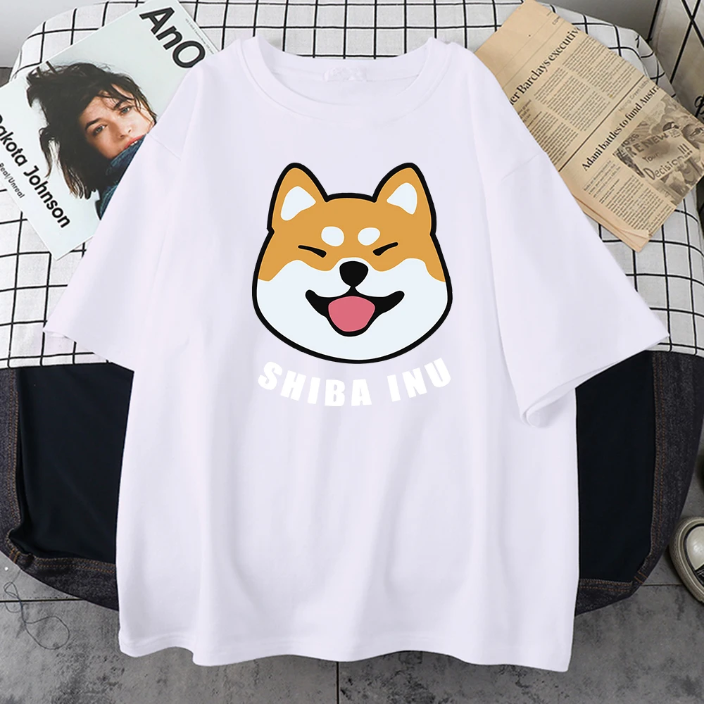 Футболка мужская с надписью Сиба-ину, милая винтажная уличная одежда в Корейском стиле, Повседневная рубашка с круглым вырезом, футболка