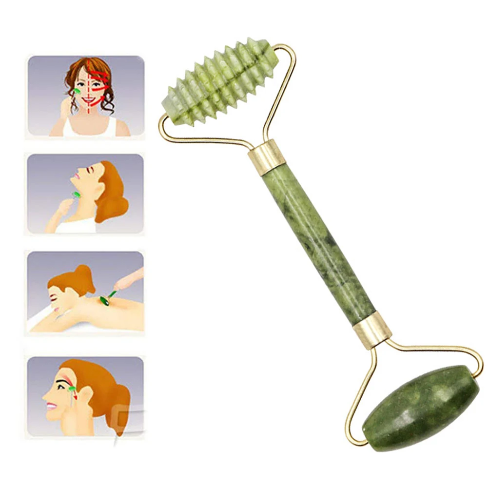 Натуральный нефритовый ролик из розового кварца, набор для массажа лица, массажер для тела, Нефритовый массажный набор для лифтинга лица, инструменты для массажа