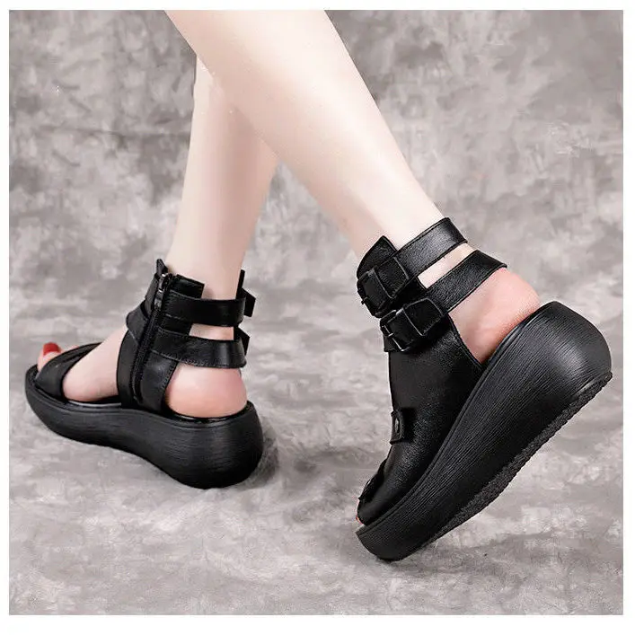 Женские летние босоножки; Ботинки на среднем каблуке Женская обувь на танкетке в винтажном стиле; Кожаные плюс Размеры Sandalias Mujer Sapato Feminino 2021 модная обувь