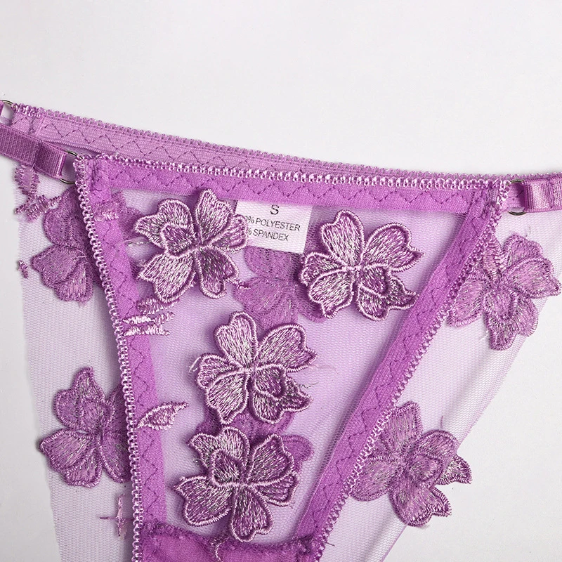 Великолепный комплект! И трусики, и бюстгальтер усыпаны лепестками - выглядит волшебно. Все элементы прошиты, нитки не торчат. Цвет яркий, заметно, что материал выбран качественный. Очень понравилось, описание соответствует действительности. Доставка заняла 14 дней в Екатеринбург. Спасибо большое продавцу