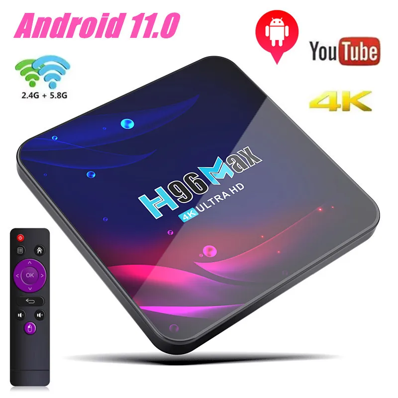 Смарт-ТВ коробка Android TV BOX 11,0 H96 Max Rk3318 4K двухъядерный процессор Wi-Fi BT Media Player Play Store Быстрый Android ТВ Декодер каналов кабельного телевидения H96max V11 Ip ТВ