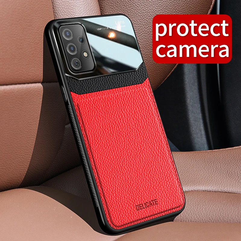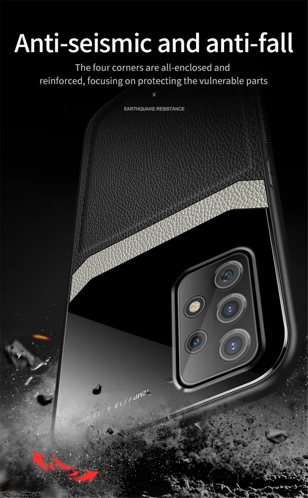 Кожаный чехол для Samsung Galaxy A52 A72 A51 A71 A50 A70 A12 A32 A42 M62 M51 S21 Ultra Plus S20 FE Note 20, стеклянный противоударный чехол