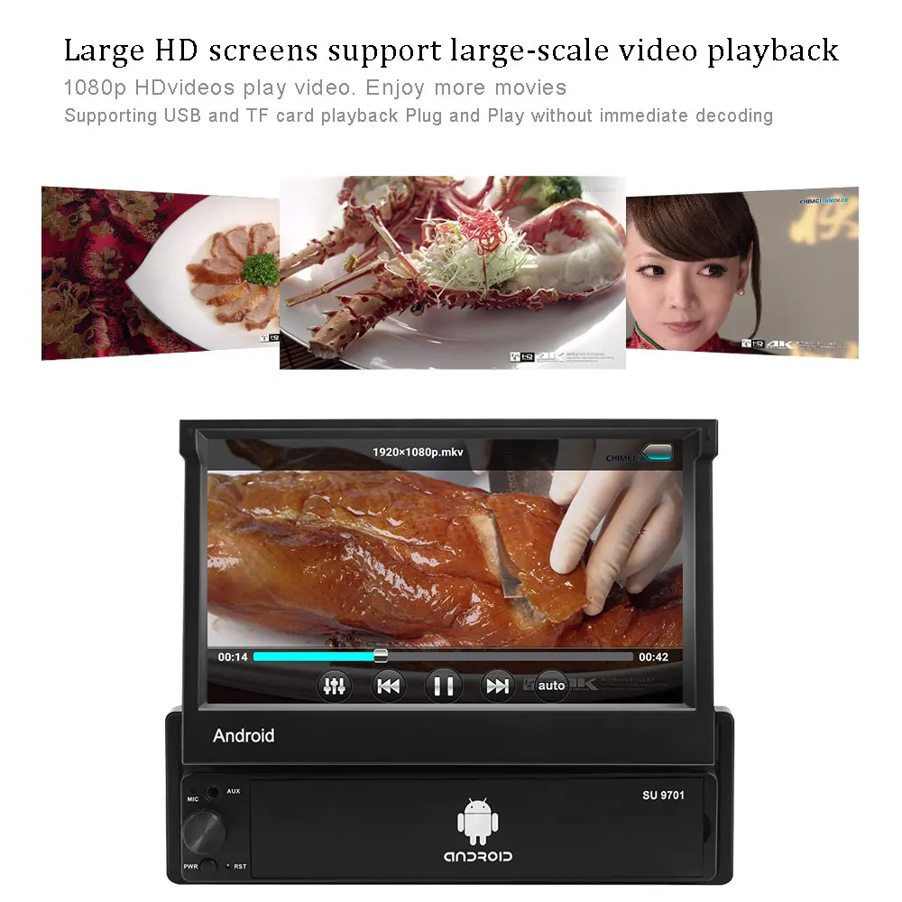 Особенности:1,7 ''HD 1080P большой экран Интеллектуальная навигация, емкостный складной сенсорный экран, мгновенный отклик, не штукатурка2. Поддержка Android/ Iphone зеркальная ссылка:IOS односторонняя: iOS поддерживает мобильный телефон односторонняя проекция на машинуAndroid двусторонний: Android поддерживает двустороннее подключение мобильного телефона3. Gps-навигация: поддержка многих видов навигационных приложений, таких как карта Baidu, карта Gaode, карта Careland, встроенная карта Европы4. Fm-радио: высококачественное цифровое стерео fm-радио, 18 станций могут быть предустановлены, слушать рассылки и информацию о движении в любое время и в любом месте.5. Несколько режимов воспроизведения: Поддержка воспроизведения USB и воспроизведения музыки AUX и воспроизведения Bluetooth6. Функция входа камеры заднего вида (опционально): нужно выбрать камеру, если подключить к автомобильной резервной камере, автомобильный стереомонитор автоматически включится в детали заднего вида (требуется опционально)7. Поддержка Wi-Fi соединения, онлайн-воспроизведения видео и онлайн-навигации по карте8.RCA аудио выход может быть подключен к сабвуферу9. Аудио без потерь: обработка DSP и звук эквалайзера доставят вам удовольствие от концертной сцены10. Поддержка функции входа DVR, легко управлять видеорегистратором на экране дисплея. (видеорегистратор опционально, нужно купить видеорегистратор отдельно)11. Управление рулевым колесом: Поддержка оригинальной кнопки обучения рулевого колеса автомобиля, через него вы можете управлять функциями, которые вам нужны с помощью рулевого колеса, более удобнымТехнические характеристики:Система: Andriod 8,1Программное обеспечение: 8227LТип: Android навигация MP5Размер: 7 дюймовВерсия Bluetooth:Bluetooth 4,0Разрешение: 1024*600Аудио усилитель: TDA7388Напряжение: 12 ВВыходная мощность: 50 ВтПамять: 2G + 16GФормат аудио: MP3/WMA/WA/OGG/FLAC/APEФормат видео: RM/RMVB/MP4/FLV/MKV/3GP/AVIASF/SWFMP1Изображение формате изображения: JPGДиапазон FM: FM 87,5 ~ 108 МГцРабочая температура:-10 ℃ ~ + 60 ℃Интерфейс USB: USB 2,0Заводской пароль: 1111Язык экранного меню английский/Индонезийский/Малайский/Чешский/Датский/немецкий/Испанский/Филиппинский/французский/Хорватский/итальянский/Латышский/Литовский/Венгерский/голландский/Норвежский Bokmal/Польский/Португальский/румынский/словцкий/Финский/Шведский/Вьетнамский/Турецкий/Греческий/Болгарский/русский/украинский/Иврит/урду/арабский/персидский/Hindi/Бенгальский/тайский/кхмерский/Корейский/китайский (упрощенный/традиционный)/Японский