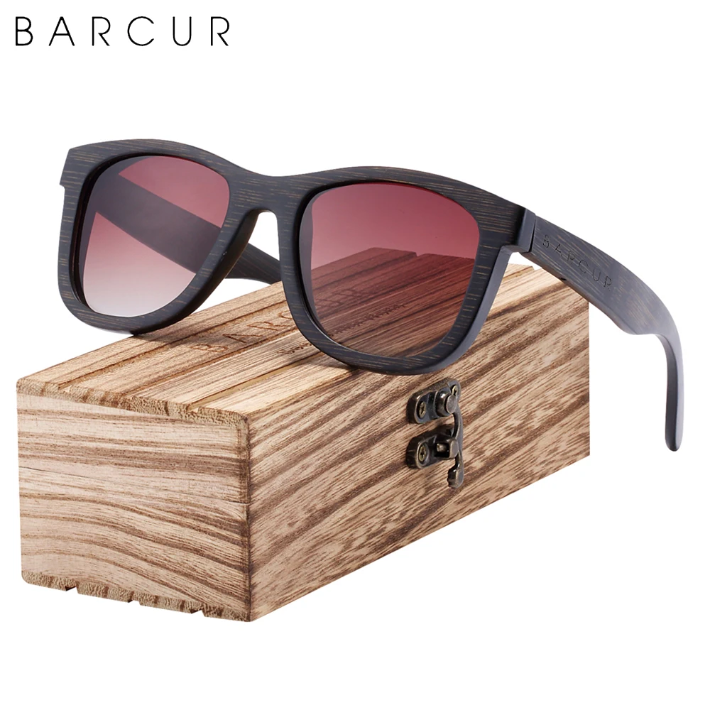Темные бамбуковые женские солнцезащитные очки BARCUR, брендовые Дизайнерские деревянные модные поляризационные мужские солнцезащитные очки с защитой UV400