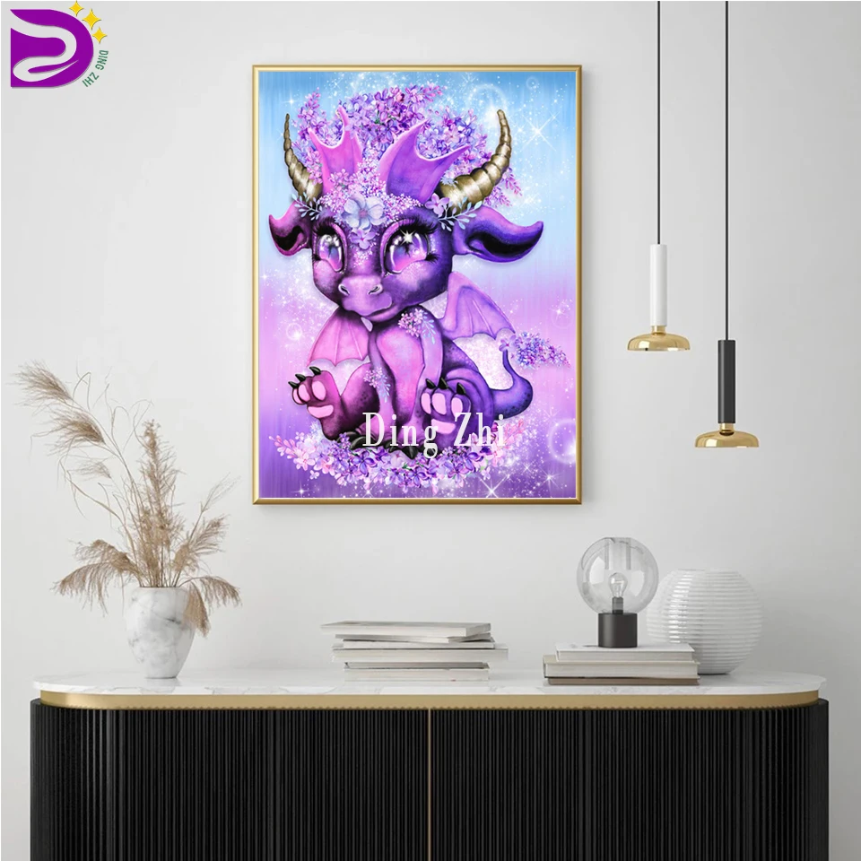 5d DIY наборы для алмазной живописи мультфильм фиолетовый дракон полный дрель квадратный/круглый Алмазная Цветочная мозаика животных Алмазная вышивка