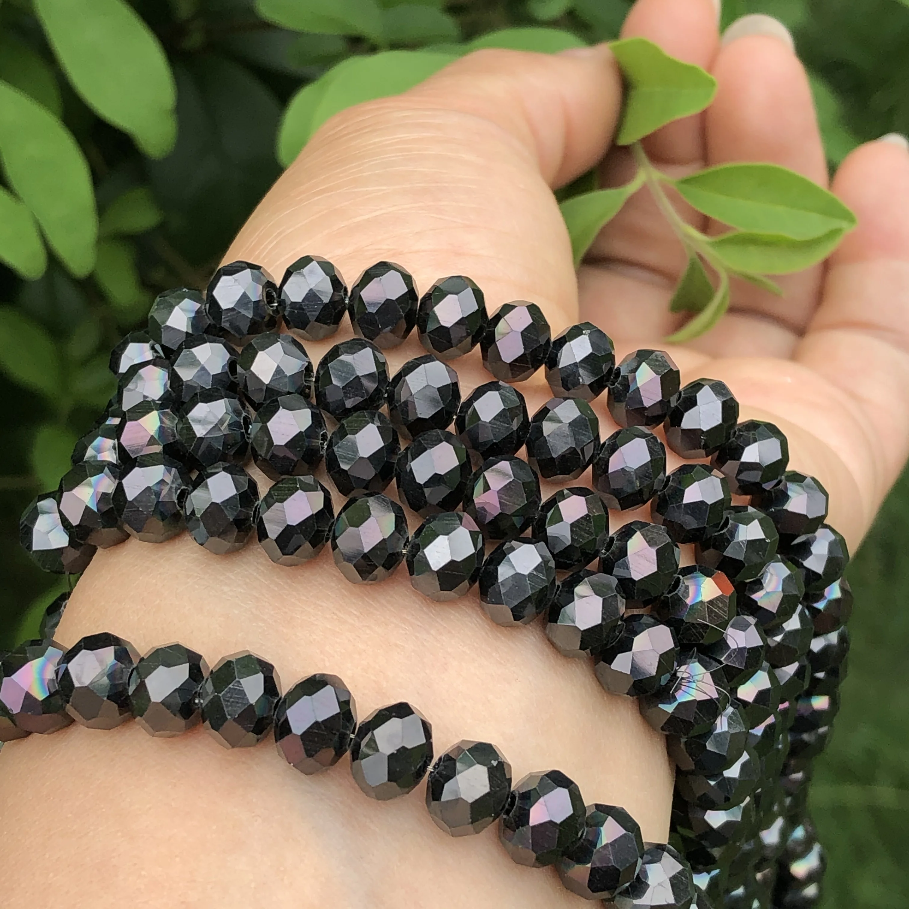 Граненые круглые бусины, черные хрустальные бусины из гематита для ...
