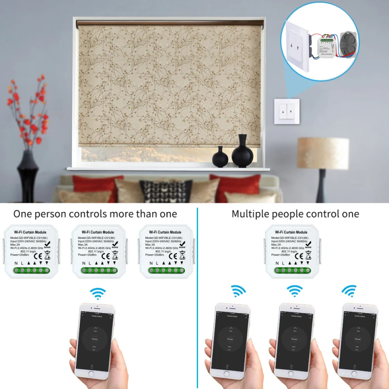 Tuya Smart Шторы переключатель WI-FI QS-WI-FIBLE-c01 BK 2 Way штарк...