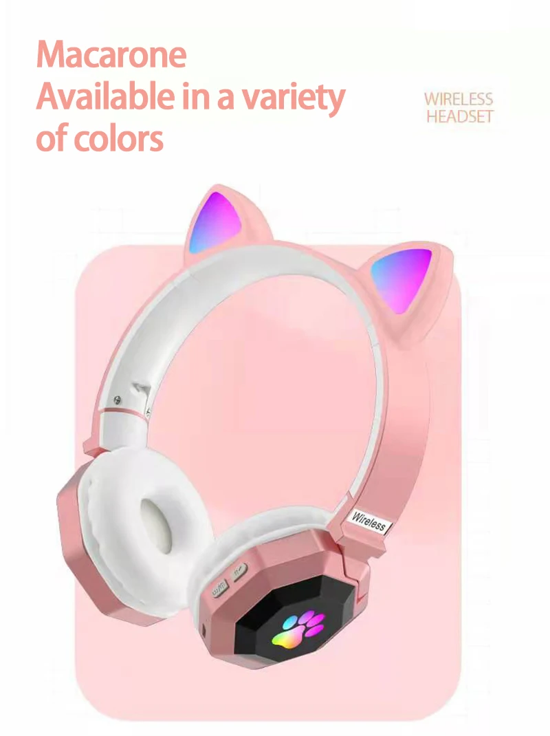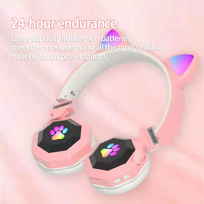 Многофункциональные Беспроводные стереонаушники со светодиодной подсветкой и кошачьими ушками, Bluetooth-совместимые спортивные Игровые наушники, FM-радио, проигрыватель, гарнитура для IOS, Android