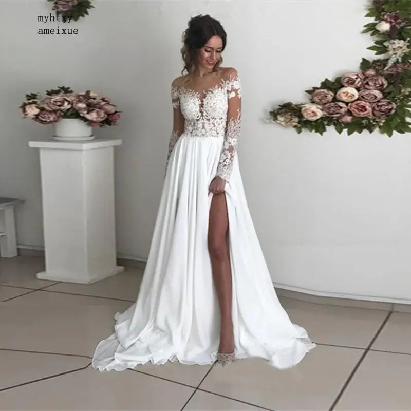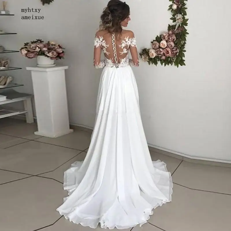 Шифоновое платье до пола с иллюзией, Пляжное, размера плюс дешевое сексуальное свадебное платье в стиле бохо, 2021 простое платье