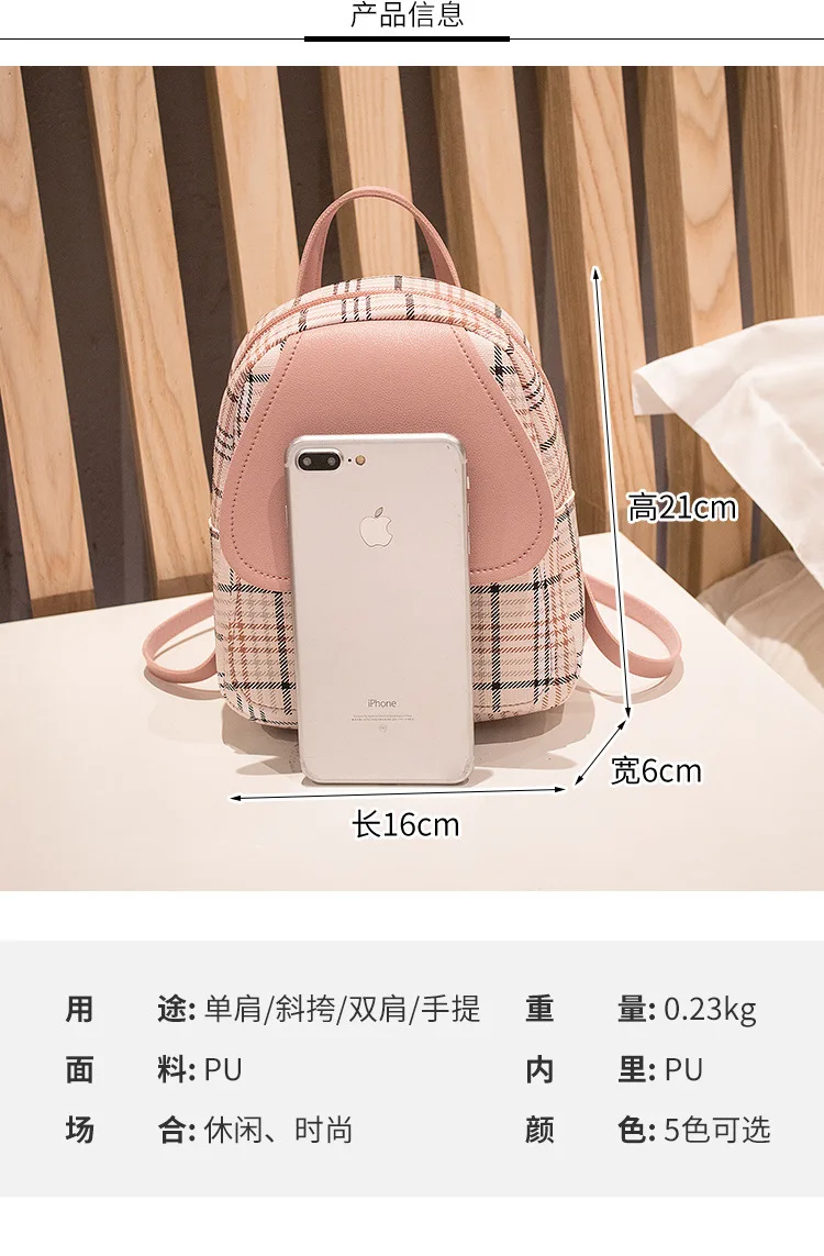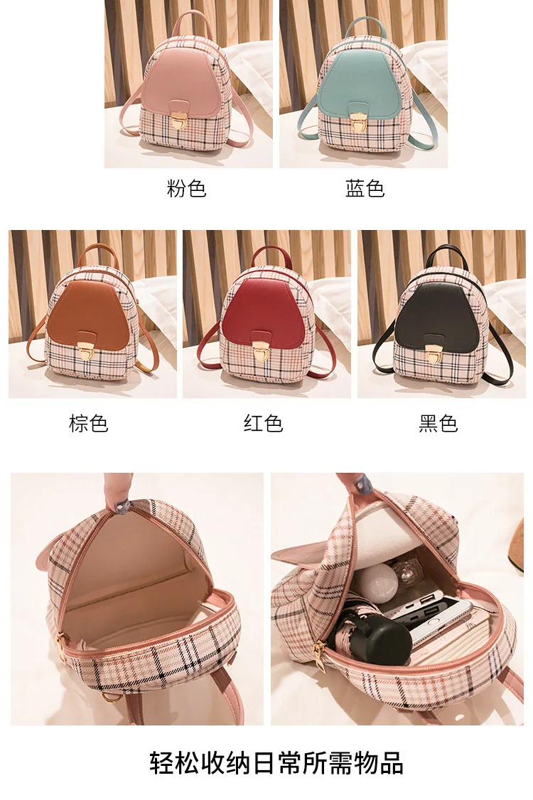 Мини-рюкзак через плечо для девочек-подростков, клетчатый женский кошелек для телефона в Корейском стиле, новинка 2021