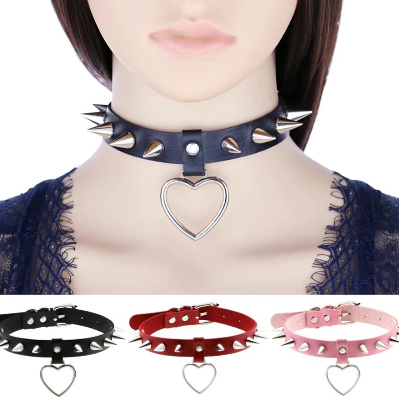 Спайк Панк чокер сердце воротник для девочки металлическое ожерелье...