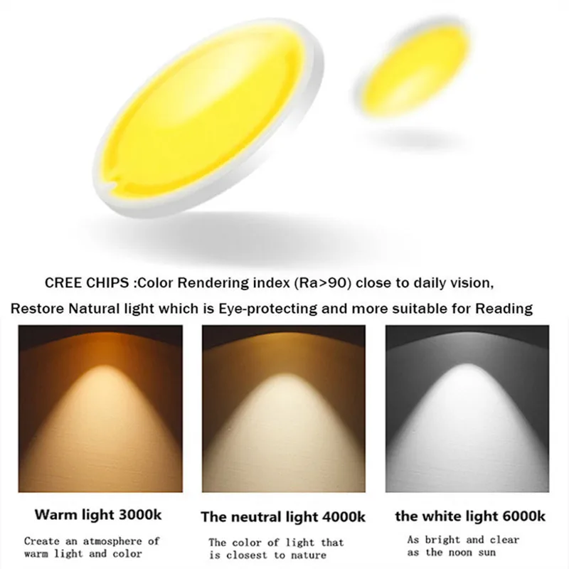 Вход Напряжение: AC85-265V AC110/220V 50/60HzМощность: 7 Вт/12 ВтРегулировка яркости: ДаИндекс цветопередачи (CRI):>Ra85Угол луча: 30 °Светодиодный чип: чип COB (Epistar)Световой поток: 95 ~ 110 лм/ВтТемпература: от-25 до 45 °Цветовая температура: теплый белый:(2700K-3000K); Натуральный белый:(4000K-4200K); Холодный белый:(6000K-6500K)Срок службы: 50000 ~ 80000 часовГарантия: 6 летМатериал: литье алюминияПроисхождение: Гуандун (Китай)